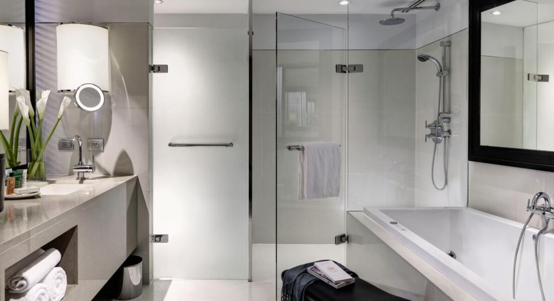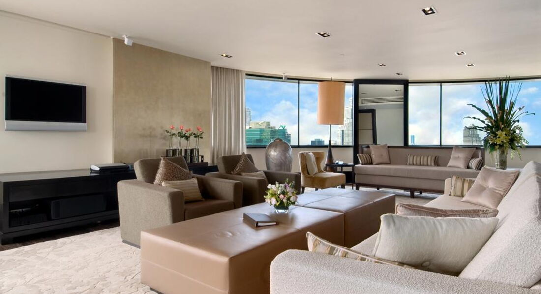 • сейф у номері (безкоштовно) • відеоігри (платно) • ванна та душ • набір для приготування чаю/кави (платно) • room service: цілодобово • кондиціонер • праска • CD/DVD-програвач (Executive Suite) • телефон (з автовідповідачем) • радіо • капці • фен • ТБ: кабельне • міні-бар (платно) • будильник • LAN/Wi-Fi (платно) • халат • прасувальна дошка • телевізор Територія та послуги: • бізнес центр • автобус до центру міста (безкоштовно) • спа центр • хімчистка • критий басейн (шезлонги та рушники безкоштовно) • бар (панорамний Three Sixty на 32 поверсі) • 17 конференц-залів (на 50–700 осіб) • 4 ресторани • пральня • сейфи для зберігання цінностей (безкоштовно) • басейн(відкритий, шезлонги та рушники безкоштовно) • 3 джакузі • Wi-Fi (безкоштовно) • магазини Розваги та спорт: • сауна (безкоштовно) • парна (безкоштовно) • аеробіка (безкоштовно) • джакузі (безкоштовно) • масаж (платно) • тренажерний зал (безкоштовно) • йога (безкоштовно) • тайський масаж (платно) • манікюр (платно) • прогулянки річкою (платно) Для дітей: • дитяче меню у ресторані • послуги няні (за запитом, платно) • Малюки від 8 місяців до 3 років: дитяче ліжечко (за запитом) Живлення: • BB • HB До оплати приймаються кредитні картки: Visa, MasterCard, American Express, Diners Club.