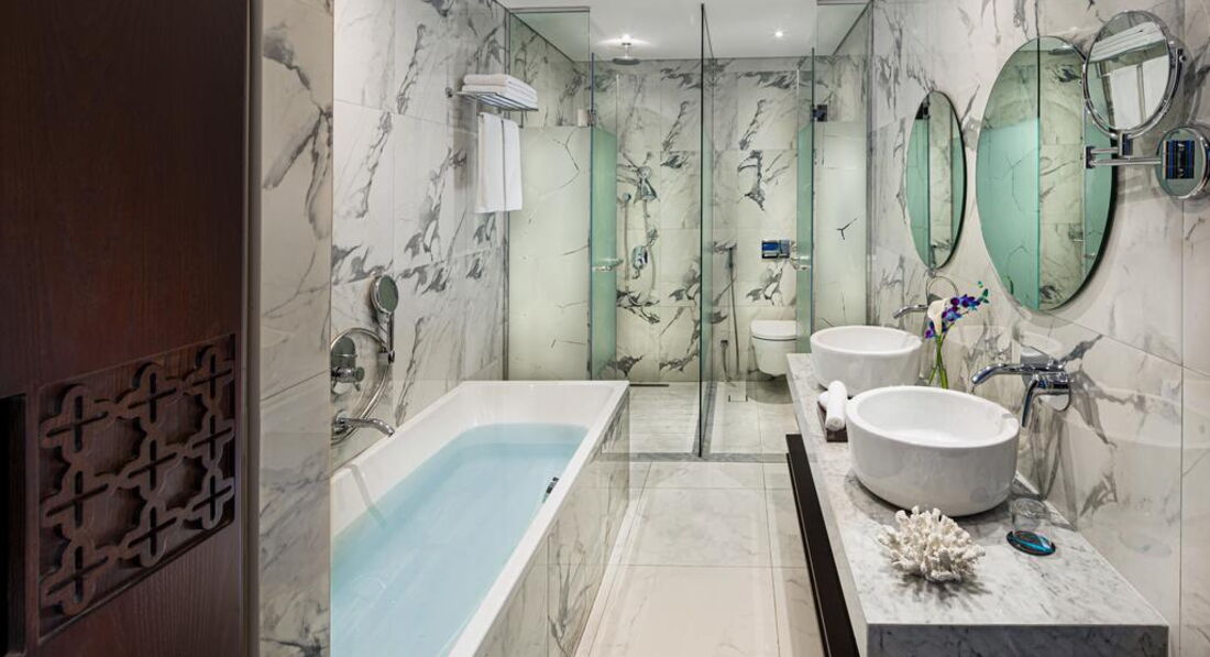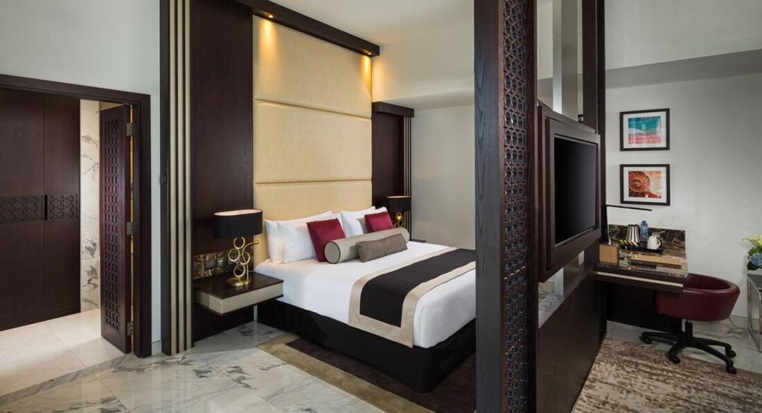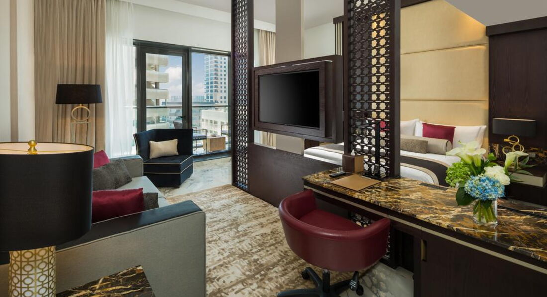 • 20 Executive Suite (63 м2, з видом на затоку та шосе Шейха Зайда, балкон, ліжко king-size, є софа, макс. 3+1 чол.)