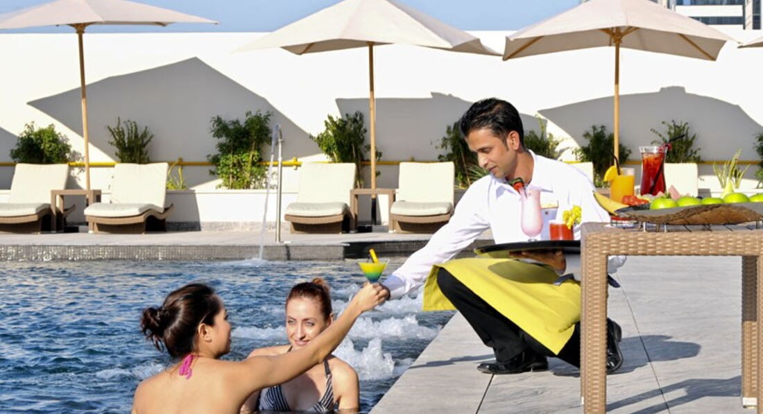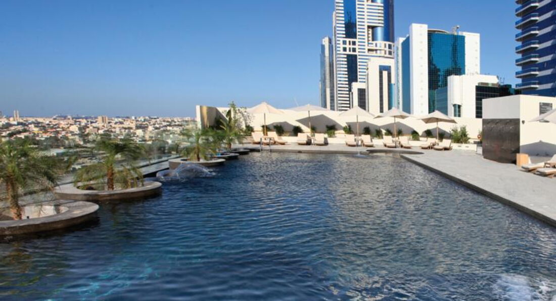 Отель на четвёрку. Удобно расположен между деловым центром и центральным туристическим кварталом (Бурдж Халифа). До остальных зон расстояния большие. Бассейн в соседнем здании, вернее на крыше паркинга. Вход в бассейн по переходу от ресторана и снова на лифте. Лифтов хоть и много, но половина служебные. Для такой высоты здания приходится ждать. Завтраки обычные, всё есть, без изысков. Номера, мебель и многое другое требует небольшого косметического ремонта. Ванная через деревянные ставни от спальни.