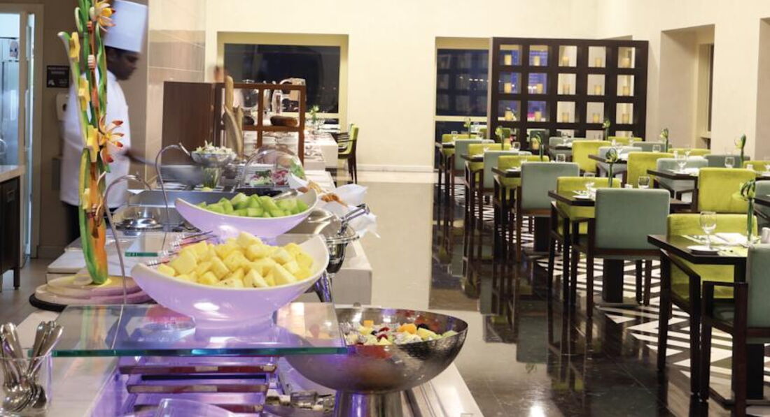 Ресторан... Ну не тянет оно на 5 звезд... Не тянет!!! Или мне так после Абу-Даби показалось... и масштабы не те, выбор блюд на шведском столе на уровне российских трешек, убил наповал консервированный сок и травянистый арбуз, какие у нас в июне месяце в Сибири продают... Да и тесноват ресторан... Можно конечно списать все на городской тип отеля, но...