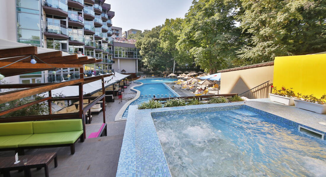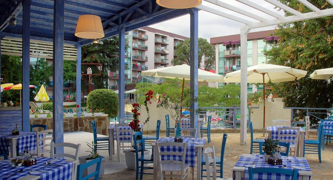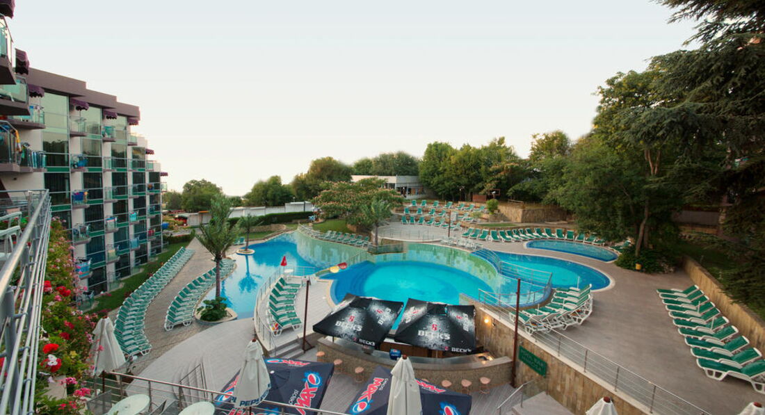 Отдыхали с семьёй (я, муж и двухгодовалый ребенок) в конце августа 2016 года. Приехали поздно в час ночи, заселили в номер и предложили перекусить, мы зашли в ресторан, там был полумрак, чуть ли не на ощупь смотрели, что можно поесть, толку от этого перекуса не было, так как , видимо, было оставлено, то что не доели на ужине. Все холодное, салаты подкисшие, булка черствая. Даже расстроились и подумали "куда же мы приехали". Но утро, спустившись в ресторан, мы обрадовались, что все намного лучше. Еды много разной, голодными точно не останетесь. Единственное, что они в мясные блюда добавляют какую то приправу, которая ни мне, ни мужу не понравилась. Обеды шикарные, супы похоже на наши, ужины тоже вкусные. Минус, если ты пришел не под открытие ресторана, то тебе может не достаться места, но если место и достанется, то может не быть чистых стаканов и кружек((( Персонал на русском плохо разговаривает. Номер убирали каждый день. Полотенца и постельное меняли. Бассейнов 4 шт, 3 центральных и один на заднем дворе. С ребенком в них редко удавалось покупаться, т.к. днем мы на море, а после солнце уже с другой стороны и ребенку было прохладно. Днем можно перекусить у бассейна(пицца, хотдоги, фрукты, овощи, булочки, мороженое и напитки). Анимация, конечно, не о чём. Если сравнить с Турцией, то ее там вообще нет. Но нам она особо и не нужна была, т.к. маленький ребенок. Но вечером хотелось бы, чтобы детки поплясали. И, кстате, аниматоры на русском не разговаривают с детьми, в основном на немецком или болгарском. По вечерам бывало показывали детские мультике на большом экране, но опять же, на болгарском языке. В целом нам там понравилось. Сейчас рассматриваем варианты на сезон 2017 г. и думает обратно туда ехать.