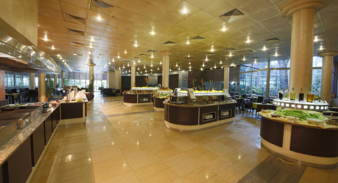 Отдыхала с внуком в этом отеле с 5 июня по 12 июня. Во первых вылет задержали с 5 утра до 5 вечера. В отель приехала с ребенком почти в 11 вечера Правда паек дали.но мы ни стали ничего есть потому что устали. А вот в номере началось самое начало нашего отдыха: в соседнем номере компания пьяных немцев как потом выяснилось отмечали отъезд....они орали до трёх ночи.....ребенок правда уснул а вот я нет. Кстати пьяные немцы были везде они аккупиррвали всё и бассейн и бар возле бассейна а вечером весь лобби бар.Такого шумного отеля я не видела нигде ....где бы я не отдыхала. Конечно еда очень понравилась правда мы мало ели . Единственное что понравилось для детей это бассейны их много и горки. Внуку очень понравилось. Море долекова то. Мы ходили пару раз купаться а в остальное время гулять ходили к морю.Один день было очень холодно 17 градусов только а потом ничего разогрело я успела за остальные три дня очень даже не плохо загореть. Персонал приветливый и доброжелательный. Правда анимации никакой не детской не взрослой. Да и ещё одно что меня поразило в этом отеле когда заселились в понедельник стояло в ванной комнате 2 шампуня и два геля для душа . За 7 дней персонал не положил ни шампуня ни геля. Хорошо хоть свой шампунь привезли и гель для душа....первый раз встречаю такое.....В общем в этот отель рекомендую людям которые хотят тусоваться и я пожалела что приехала сюда с ребенком. В 2016 году была в Болгарии в солнечном берегу намного спокойный курорт.