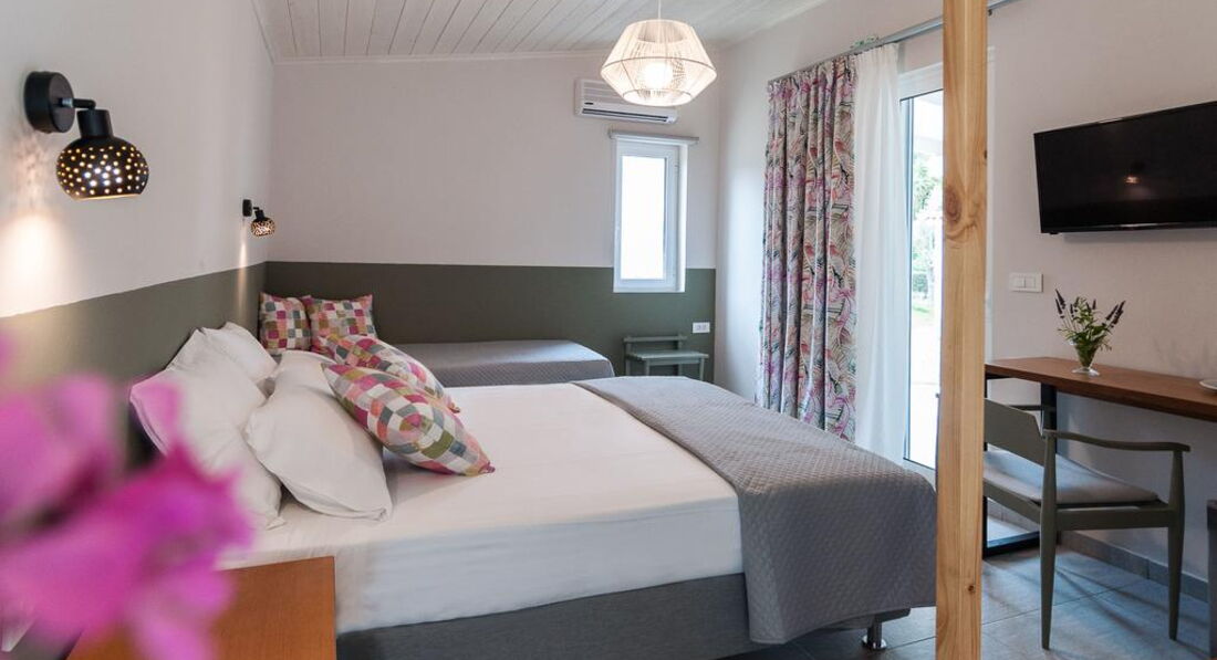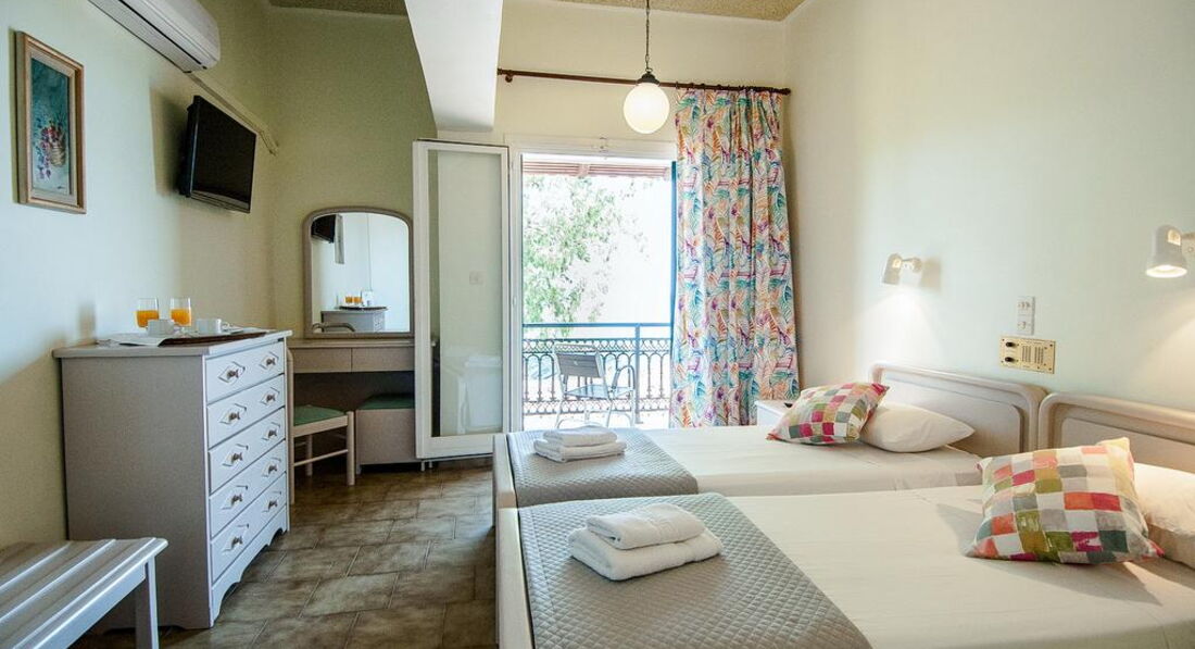 Невеликий готель на о. Закінф, на першій береговій лінії піщаного пляжу з плавним заходом у море. Розташовується у курортному селищі Аргассі з його яскравою космполітичною атмосферою. Складається з центрального корпусу та комплексу бунгало, розкиданих по листяно-хвойному парку. Готель підходить для спокійного відпочинку, зокрема з дітьми.