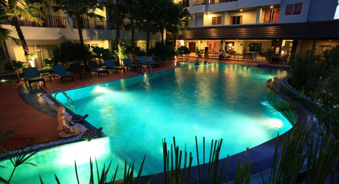 И такс,отзыв добавляю только вот сейчас))как то не доходили у меня руки))Посетили впервые Тай мы в 2011 году и наш первый отель был именно этот))) Ни чего такого конечно сказать не могу...Есть только ТРИ плюса,это хорошие номера))так как у нас был делюкс,и большой бассейн,что для Тайланда редкость))))а так же это бесплатный интернет))как в номере-через провод,так и вай фай на территории .Завтраки...извините,но это ГЭ(((((((,никогда ничего НЕТУ,утром привозят китайцев поесть,после них не остается НИЧЕГО,персонал конечно же ничего не докладывает,фрукты всегда прокисшие,так как лежали прям у окна,сервиса нету никакого,как в принципе и персонала в отеле почти нету)))Мужичек который жарил на завтрак яишенку с омлетом,он же убирал со столов))весело..)))радовала только уборка номеров ))ГЫГЫ)))всегда мыли полы)),НОООООООО-за три недели прибывания нам поменяли постельное белье ДВА раза,и то,однажды постелили рваный пододеяльник обратили на это сразу внимание,и только после этого поняли,что нам просто сбивают постельное и ничего не меняется)))а из-за освещения хренового не видно каких либо казусов,пришлось обращаться к нашему гиду,благо натали-турс прибывает в данном отеле ежедневно,на ресепшене бабенка в очках не знаю есть ли она и по сей день,ужасная однако личность(((на все вопросы и проблемы просто улыбалась,как нам показалось то,в Тае все доброжилательные,а как заходили в отель видели ее фэйс камнем(((,последующие года с таким не столкнулись ни в одном из отелей ,НОО Я НЕ УТВЕРЖДАЮ,ЧТО ОНА РАБОТАЕТ И СЕЙЧАС,САМЫЙ большой плюс Тайского отеля это-никаких тараканов,муравьев НЕ БЫЛО,у нас был номер с кухней,мы оставляли бывало еду прям на столе)))ВСЕ обошлось))),удобно было,что в номере была микроволновка,что очень выручала нас)))От центра далеко,тук-туки не ездят , рядом не было ничего дельного))кроме салона красоты))в котором работал классный паренек))волосы нарастил Классно))без коррекции протаскала ГОД))))))вот так!!)))Сейчас этого салона к сожалению нету...((((В общем,если едете в Тай,то,выбирать данный отель не рекомендую,никаких плюсов,расположение никакое,конечно можно ходить и на пирс пешком,но вот ей богу не стоит этот отель этого всего!!!А так ,удачи всем отдыхающим)))ТАЙЙЙЙ_это райййййй))))))))))))))