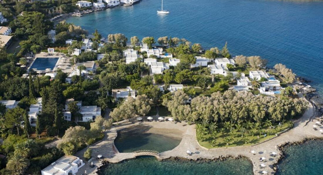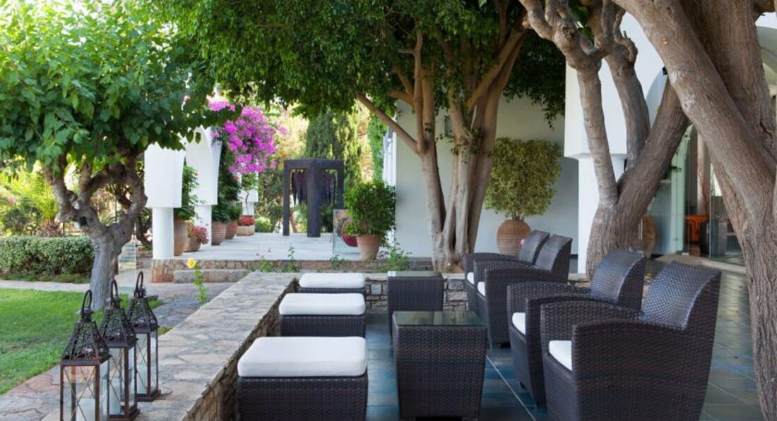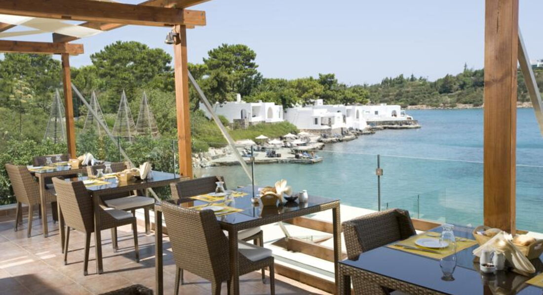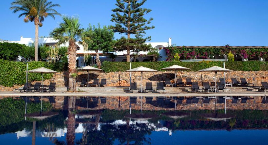 Один із перших готелів на Криті, розташований у затоці Мірабелло. Має велику зелену територію, займає площу невеликого півострова з ділянками піщаного та кам'янистого пляжу, неподалік місцевих визначних пам'яток. На території готелю можна побачити роботи сучасних грецьких та зарубіжних художників, що робить його схожим на галерею просто неба. Легка анімація. Рекомендуємо для спокійного відпочинку пар. Увага: у вечірній час діє дрес-код.