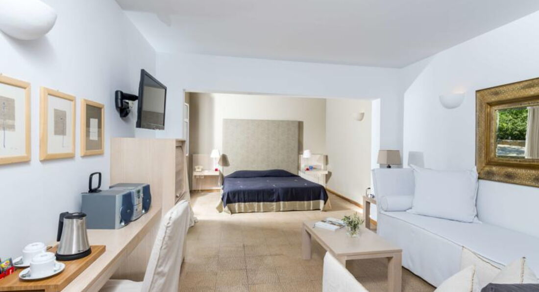 junior suite bungalow (вид на сад, спальня та вітальня без дверей, основне ліжко – 2 односпальні, дод. – софа, макс. 3 чол., 40–45 м2),