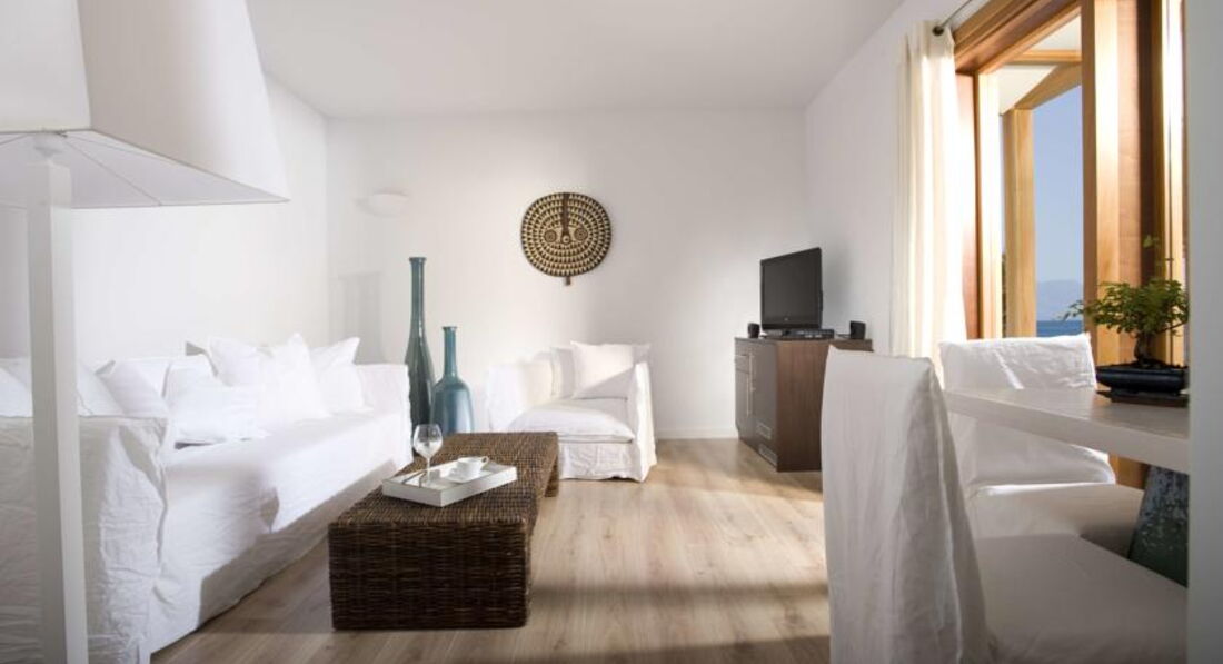 superior bungalow sea front (вид на море, спальня та вітальня без дверей, основне ліжко – 2 односпальні, дод. – софа, ванна з гідромасажем, макс. 3 чол., 40–45 м2),