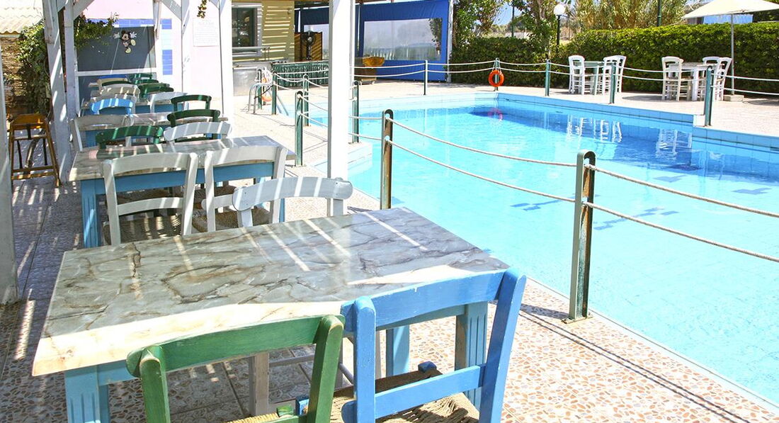 • ресторан з грецькою та міжнародною кухнею, є закритий та відкритий (біля басейну) зали