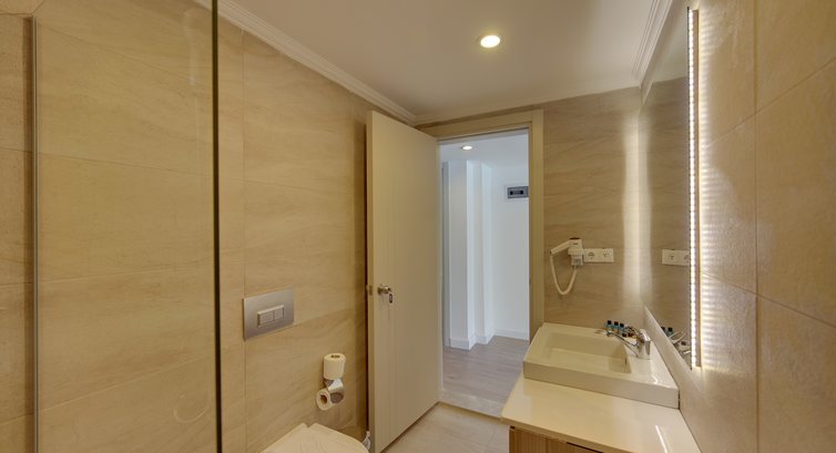 Типи номерів: • 88 standard room (1 номер для інвалідів, макс. 3 особи, 30 м2); • 23 mio mare sea view room (макс. 3 чол., 30 м2); • 26 двокімнатних family room type 1 (2 спальні з дверима, макс. 4 чол., 40 м2); • 26 трикімнатних family room type 2 (2 спальні з дверима, вітальня, макс. 5 чол., 40 м2).У номері: • сейф: у номері, платно • зміна білизни: 3 рази на тиждень • прибирання номера: щоденно • кондиціонер: індивідуальний • телефон • підлога: ламінат • фен: є • балкон або тераса (або французький балкон) • російських каналів: 1 • міні-бар безкоштовно (вода – щодня) • душ • Інтернет: Wi-Fi, платно • телевізор: є