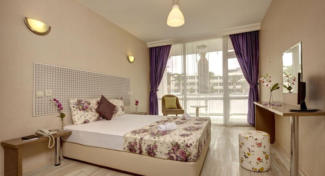 Територія та послуги: • відкритий басейн 300 м² • дитячий басейн 30 м² • лобі-бар (12:00 – 24:00, з 23.00 платно) • бар біля басейну (10:00 – 19:00) • бар на пляжі (10:00 – 19:00 / 21:00 – 00:00, з 23.00 платно) • Mi Playa A La Carte Ресторан A La Carte • телефон факс • прасування • міні-бар • послуги лікаря • фотограф • магазини • оренда автомобілів та велосипедів • трансфер до аеропорту • бездротовий Wi-Fi • сейф Розваги та спорт: • настільний теніс • анімація денна та вечірня • водна гімнастика • гімнастика • танці біля басейну • дартс • пляжний волейбол • ігри та змагання • шоу Для дітей: • няня (за запитом, платно) • міні-клуб: 04-12 років / з 10:00 до 18:00 • ігровий майданчик • дитячі стільці • дитяче ліжечко • дитяче меню • міні-диско: з 20:30 до 21:00 Живлення: Система все включено (шведський стіл). Розклад роботи основного ресторану: Сніданок: 08:00 – 10:00, Обід: 12:30 – 14:00, Вечеря: 19:00 – 21:00. Закуски на пляжі: 12:00 – 16:00. Чаювання та десерти: 16:00 – 17:00. Турецькі коржики (Gözleme): 12:00-16:00. A La Carte Ресторан: 6 днів на тиждень з 19:00 до 22:00 - барбекю та італійська кухня (за резервацією за добу, платно) Пляж: Піщаний пляж. Шезлонги, парасольки, матраци: безкоштовно. Пляжні рушники: щодня за наявності картки на рушник, безкоштовно. До оплати приймаються кредитні картки: Visa, MasterCard