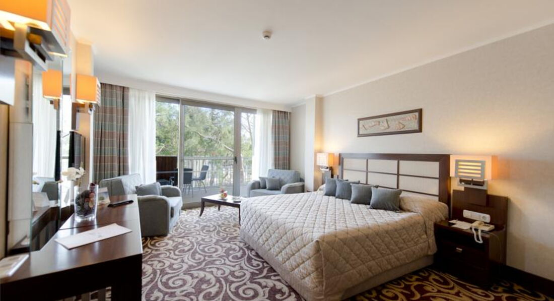 Красива територія, що потопає в зелені. Великий SPA-центр, активна дитяча та доросла анімація, затишні номери та сімейна атмосфера. Протягом усього дня відбуваються спортивні заходи, увечері проводяться дискотеки. Просторий пляж. Рекомендуємо для всіх категорій туристів.