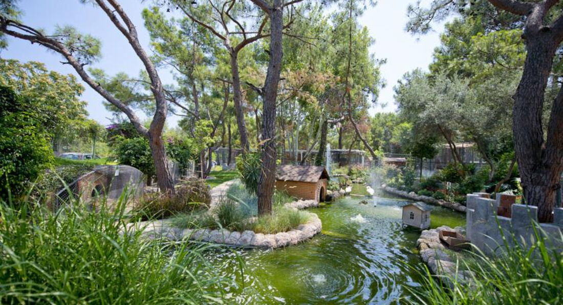 У отеля большая зеленая территория, много деревьев, все содержится в чистоте. На территории есть небольшой зоопарк (ходили туда каждое утро). Есть два больших бассейна, небольшие горки, теннисные корты, спа - центр с крытым бассейном (хамам, сауна, парная).
