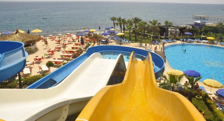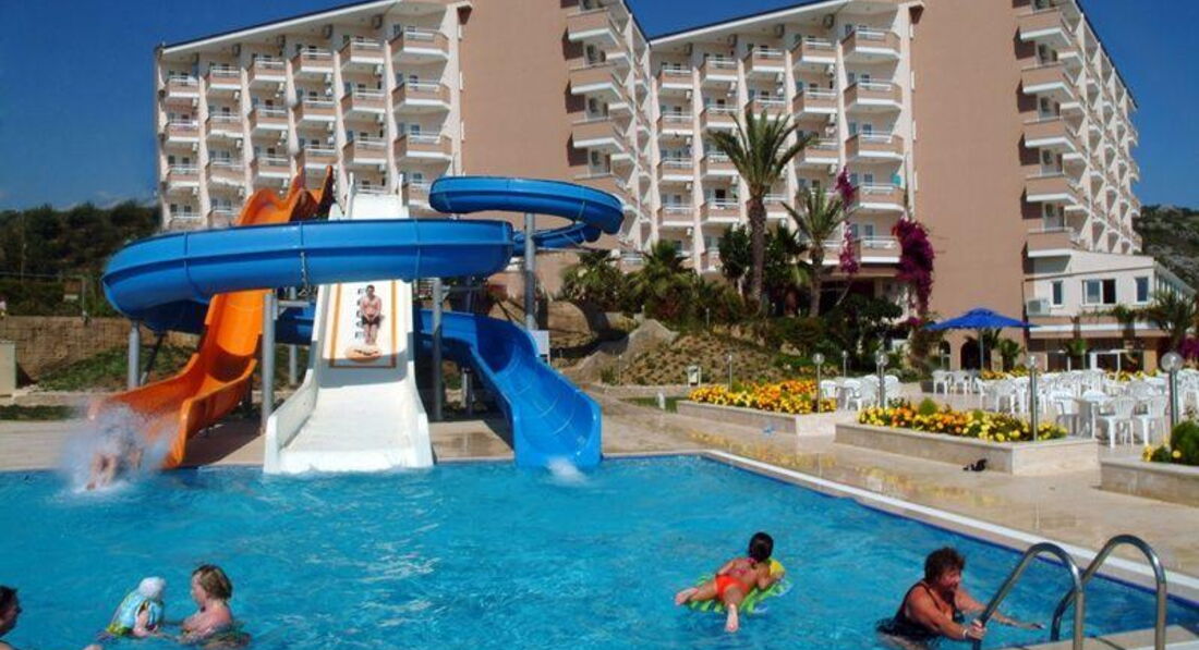 Средний по размерам с стандартными обновлёнными номерами. Два корпуса. Ближний к морю и второй через дорогу. Территория только у первого отеля. 3 Водных горок.
