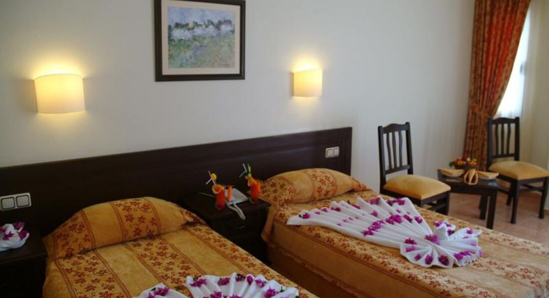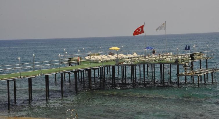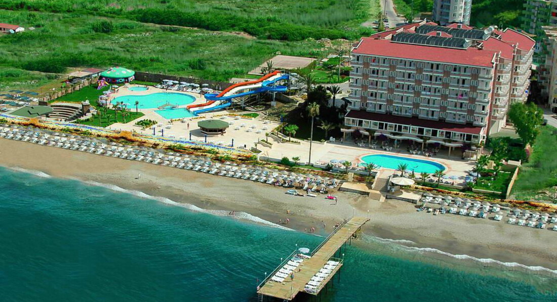 Так как отзывов российских туристов по этому отелю после открытия Турции совсем не много, то решил написать, хотя этого не делаю.Весь год ждал осеннего открытия Египта.Люблю после закрытия дачного сезона туда уезжать по причине классного моря, подходящего климата и не дороговизны путевок. Но власти думают иначе...Так как отпуск необходимо было отгулять все равно, а средства не позволяли ехать в Европу или Ю-В Азию,то решил найти путевку за недорого в Турции. По климату и температуре воды предложили Аланию. И я не прогадал! Средняя температура воздуха была 33-35, вода 26.Минус влажность ночью.Путевка на 1 чел обошлась 30т руб. за 9 ночей. Номер стандартный на усмотрение размещающей стороны(предполагается не основное здание через дорогу). Уральскими авиалиниями без задержек прилетели с друзьями в Анталью. За час прошли все процедуры и набрали народ в автобус и поехали. Ехать правда с развозом 2 часа(15км не доезжая Алании). Отель небольшой у самого моря. Основное здание и второе отделяет дорожка для обслуживающего транспорта отелей(5м).Сразу за доп. плату предложили комнату с видом на море в осн. здании. После просмотра я за 20$ согласился. Если изначально в путевке прописывать размещение в основном здании, то путевка мин. на 12т руб. дороже становится. Комнаты правда маленькие по сравнению с отелями Египта. Небольшой минус комнаты с видом на море - шум прибоя(волн),если открыто окно или дверь. Так как по ночам темп. 23, то кондеем не пользовался и открывал балконную дверь. Останавливаться и описывать номер и принадлежности долго не буду - все стандартно как везде. Полотенца есть, кровать(не широкая!!!) не скрипит. Денег за уборку не оставлял, убирали быстро,качественно и до обеда! Кстати туал. бумаги клали не менее 4 рулонов(кто понимает о чем я, тот не будет смеяться). Кто брезгует чужими полотенцами(не первой свежести) и шампунями, то лучше взять свои.Туалетные комнаты везде(на пляже, на ресепшене) чистые были всегда, что редкость! Территория очень маленькая но уютная. Мне подходит, так как я не выгляжу фитнес тренером и приехал лежать и получать солнечные ванны, а не шляться по территории и фоткаться. Водные горки подходят как детям так и взрослым. Катались наравне. 2 бассейна маленькие. Вход в море только через понтон. На нем есть место лежакам(шт. 20 наверное) и проведен шланг для обмыва соли. Для детей у берега есть небольшой песчаный залив глубиной не более 0,5м. Поплескаться хватит.Лежаков хватало всем! В основном отдыхали русские и немцы.По спиртному нареканий нет, все стандартно и достойно. Пиво не разбавленное Эффес, водка как наша так и турецкая. Рома нет. Еда - нареканий нет. Всегда курица в разных вариациях и рыба. Через день печень или котлеты из фарша. Картошка разных приготовлений, макаронные изделия, рис. Овощи как салатом так и кусками .Отдельно много зеленки, лука не резанного и что удивительно бочковые огурцы для закуски под водочку. Утром единственное так и не видел каши. Отдельно спасибо за большое кол-во фруктов на выбор всегда:виноград белый и черный, дыня, арбуз, яблоки, мандарины, апельсины. Сладкое само сабой! Рядом много пустующих 5*отелей. Есть тряпишные базары и минимаркеты. Принимают как $ так и евро. Ближайший большой городок в 5км с большим рынком и Мегамолом. Туда из отеля 3 раза в день ходят маршрутки за 1$. Обратно или набирать народ на