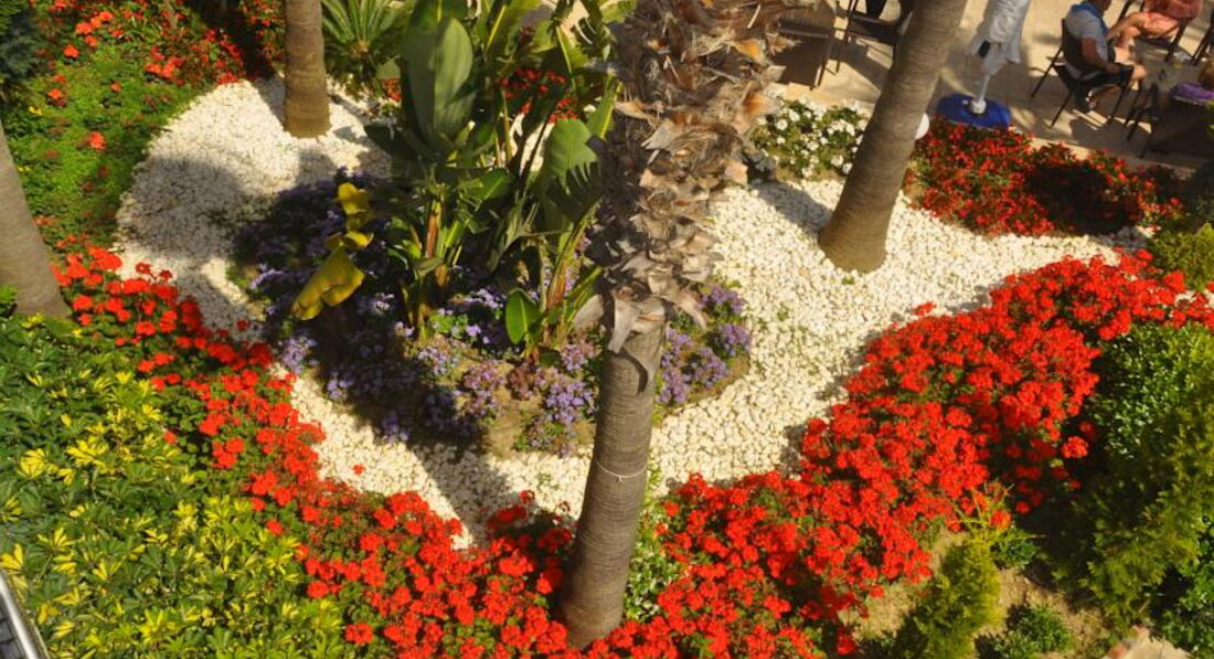 Территория отеля - компактная, но все есть, и все красиво сделано. Море всяких разных цветов, фруктовых деревьев, пальм. Два бассейна на территории, один в здании первого корпуса. Бассейны чистые. Лежаков очень много и около бассейнов и на пирсе. Полотенца пляжные дают. Есть горки на бассейне, детям очень нравится, катаются как угорелые) но и взрослым можно пару раз прокатиться. Есть теннисный корт за вторым корпусом, днем можно бесплатно поиграть.