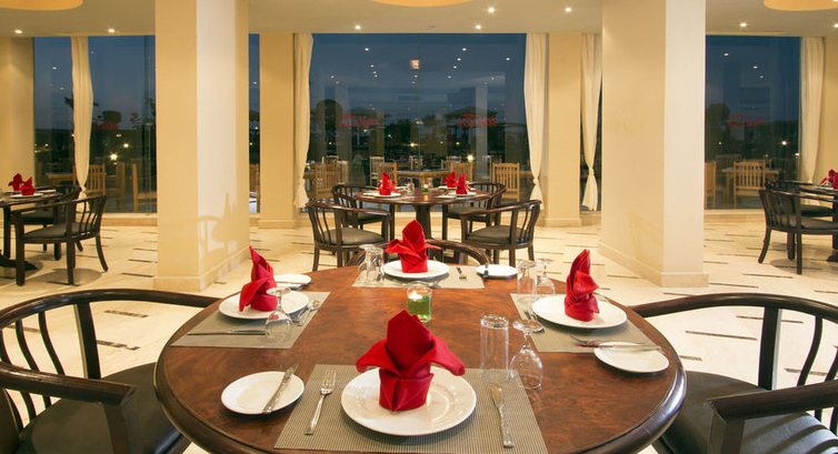 По питанию это «ЖЕСТЬ !!!» В ресторане не хватало постоянно мест. Его закрывали и надо было ждать в очереди, как в блокадном Ленинграде. Никто даже не подумал как-то это исправить или хотя-бы вежливо извиниться за неудобства перед посетителями. Помидоры и огурцы имели запах хлорки, то мясное есть было страшно, потому что стаями летали мухи и лазили по блюдам. Вместо Спрайта ребенку (9 лет) налили что-то непонятное, в результате чего пролежал в номере 2 дня с отравлением. В конце пытались подарить бутылку Спрайта в номер, чтобы загладить свою вину.