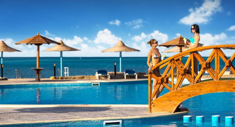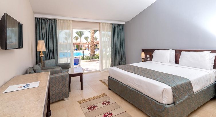 Минус или плюс не знаю но отель без моря ну точнее прекрасное море для детей а вот взрослым не очень понравится. Пляж длинный песчаный. Рыбок почти нет так что и смотреть особо нечего ну это мелось. До глубины идти прилично. Хотя конечно на отдыхе с детьми это преимущество но мы отдыхали парами веселой компанией и нам было не очень. Зато в отеле отличнийшие бассейны. Возле отеля тоже особо смотреть нечего ну это по сути не проблема. Мы оттянулись на экскурсиях. Море дополнили экскурсией остров утопия было очень круто много чего увидели и даже порыбачили. Наплавались в море и закапывались в прекрасный песочек острова. И нас даже отлично накормили в обед. А еще были две замечательные интересные исторические поездки в луксор и каир. Узнали много интересного о Египте и окунулись в его историю. Ехали на отличных комфортабельных автобусах и гид веселил байками всю дорогу. Все очень понравилось и обошлось не дорого. Правда брали у местного гида по имени Mido Bikham его можно найти через яндекс или соц сети. Стоимость почти в трое ниже чем в отеле. Сама территория отеля красивая и довольно зеленая это конечно не джунгли но все очень аккуратно подстрижено ухоженно. Есть где погулять. Ну про номера так вполне приличные все работало да и уборка нормальная. Питание конечно не супер разнообразное но что покушать выбор довольно большой. С море продуктами туго но рыба каждый день. В мясных блюдах недостатка не было. Фруктов выбор скромный. Напитки как алкоголь так и остальное мясные так что возьмите если что покрепче с собой. В общем если ехать с детьми то норм но вот отдых толпой с друзьями был подпорчен морем.
