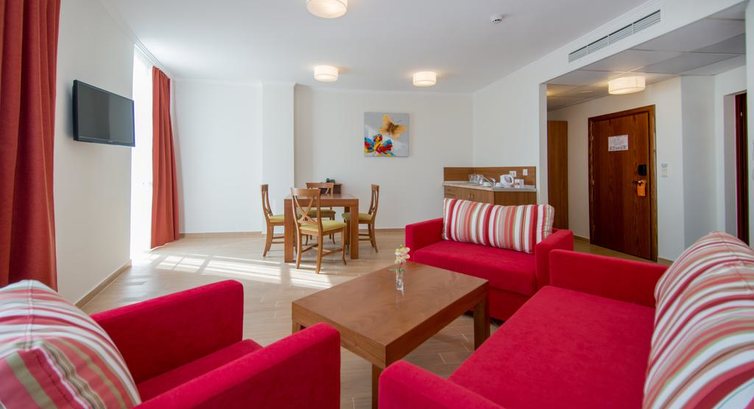 We stayed here with our 2 children aged 15 months and 5. We booked a studio with a sea view. Rooms are modern and spacious.