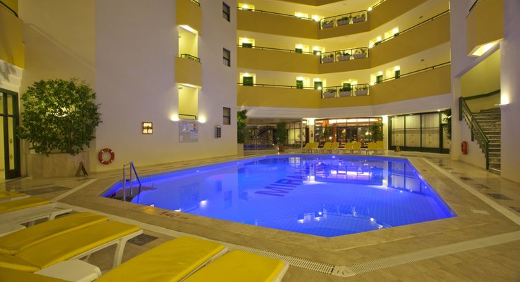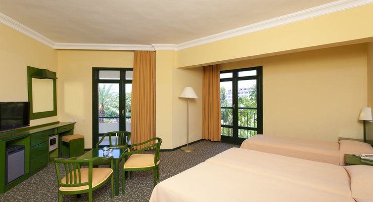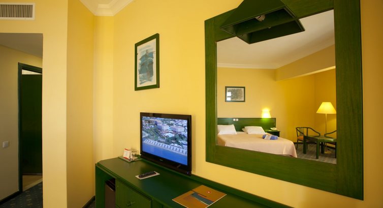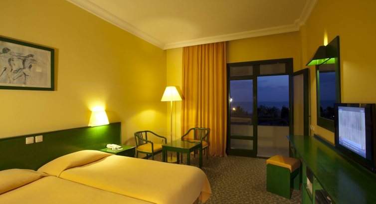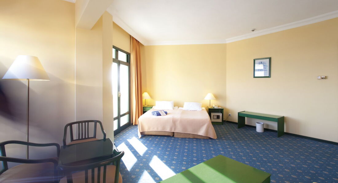 Номер: Мы жили в family room на втором этаже. Балкон выходил на въезд в отель и бассейн соседнего отеля Мирамар Квин, а окно - на море. В номере были две кровати (двуспальная и односпальная), две тумбрчки, телевизор (из российских каналов ловил ТНТ, СТС, Россия24, 1 канал и ещё какие-то музыкальные), мини-холодильник (ежедневно пополнялся водой), чайник и две чашки (а ещё чай, сахар, кофе), сейф, два журнальных столика, три кресла, большой шкаф для одежды, зеркало. На полу - ковролин. Кондиционер центральный, включался сам, когда мы заходили в номер (если окна были закрыты. При открытых окнах не работал). В ванной есть фен. Вся сантехника чистая и исправная, горячая вода в наличии весь день.