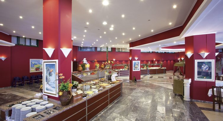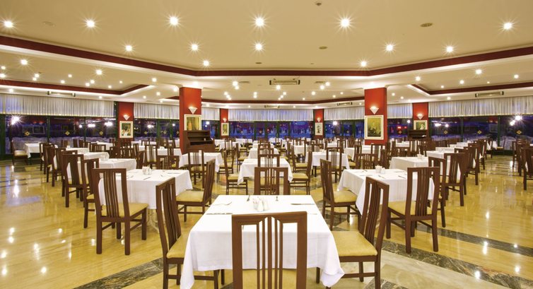 Питание в основном ресторане выше всяких похвал. Мясо: говядина, баранина, курица, индейка в разных исполнениях, рыба: дорадо, пангасиус, скумбрия, форель, лосось. На гарнир: брокколи, цветная капуста, шпинат, картофель - пюре, фри, по-деревенски. Рис, булгур, нут, макароны и разные вариации из них. Помидоры, огурцы, редис, салаты, зелень, сыры, оливки и т.д. и т.п. Выпечка на любой вкус. Глаза разбегаются. А главное - все очень вкусно. Хоть детей в отеле мало, для них тоже есть меню. Стоят кофейные автоматы, различный чай в пакетиках, на завтрак - какао. Фрукты: апельсины, яблоки красные, зеленые, груши, бананы, мушмула, клубника, арбузы, дыни. После ужина -мороженое разных вкусов. И что понравилось - никакой суеты, народу много, но никто никому не мешает, не толкается. Официанты радуют, в чистой отутюженной форме, стараются одинаково и для немцев и для русских. Только еще подходишь к столу - он уже с улыбкой направляется у тебе: Привет! Что желаешь? Грязная посуда на столе не задерживается, опять же с улыбкой с твоего разрешения.