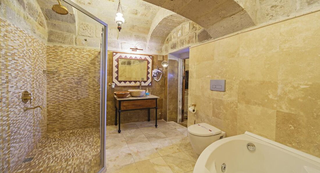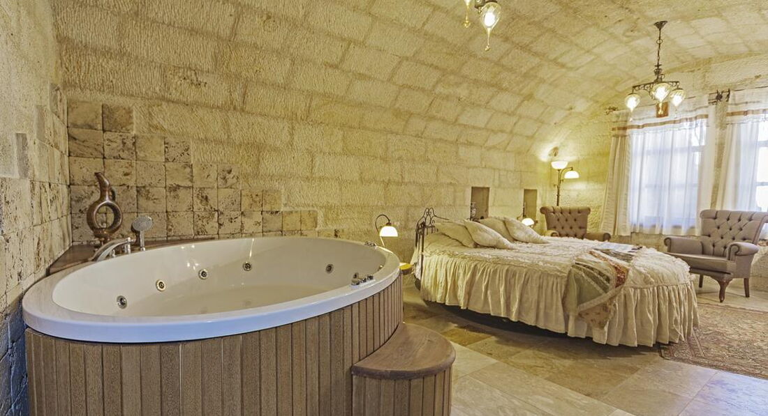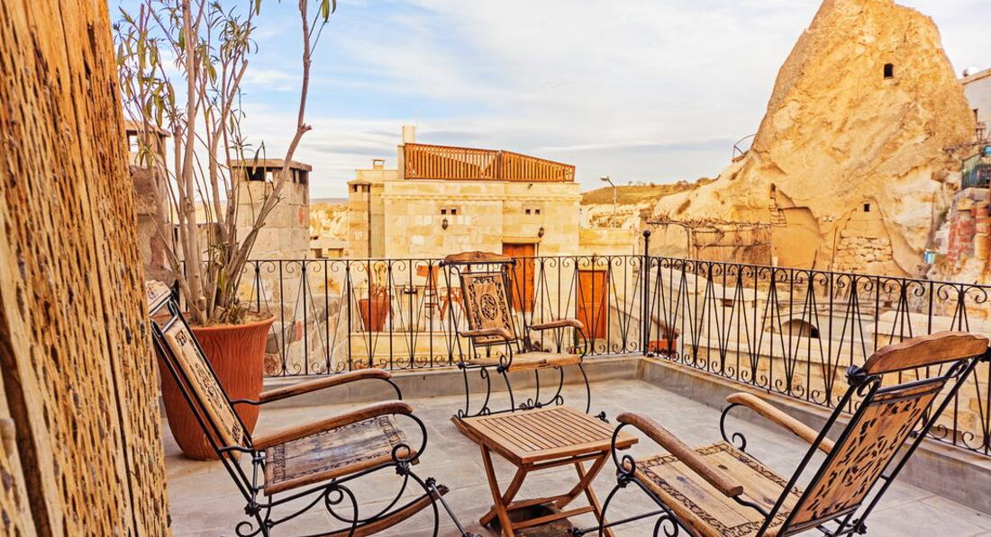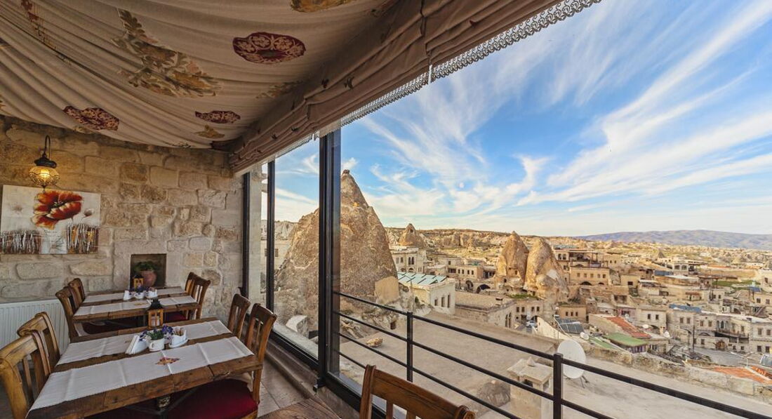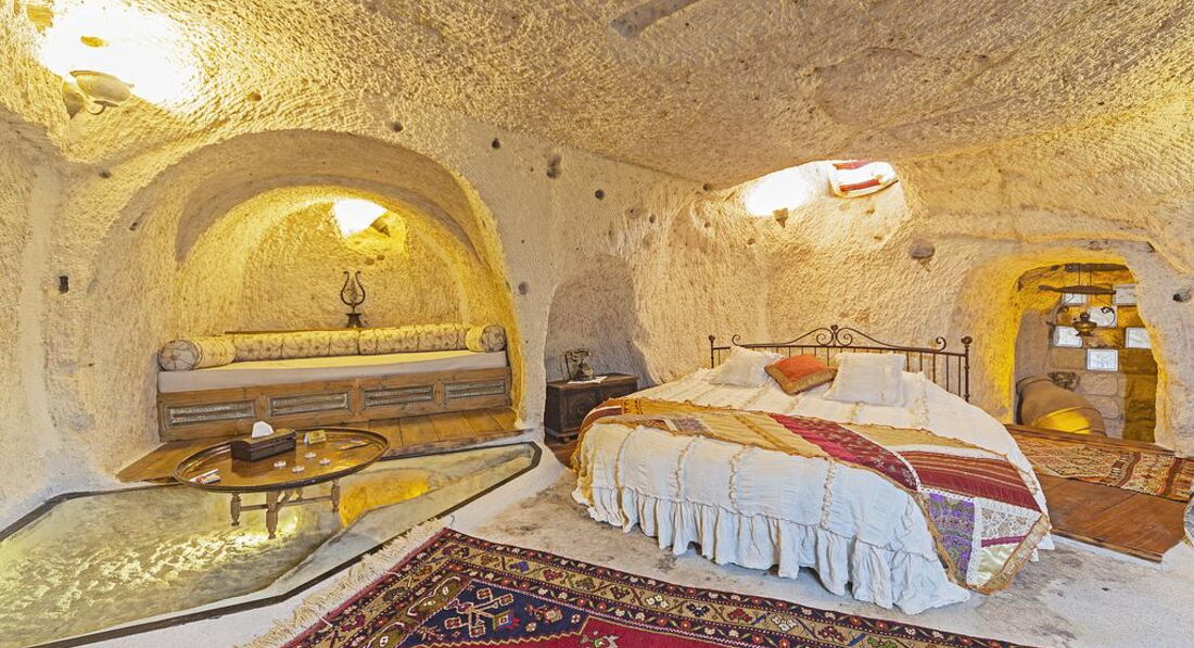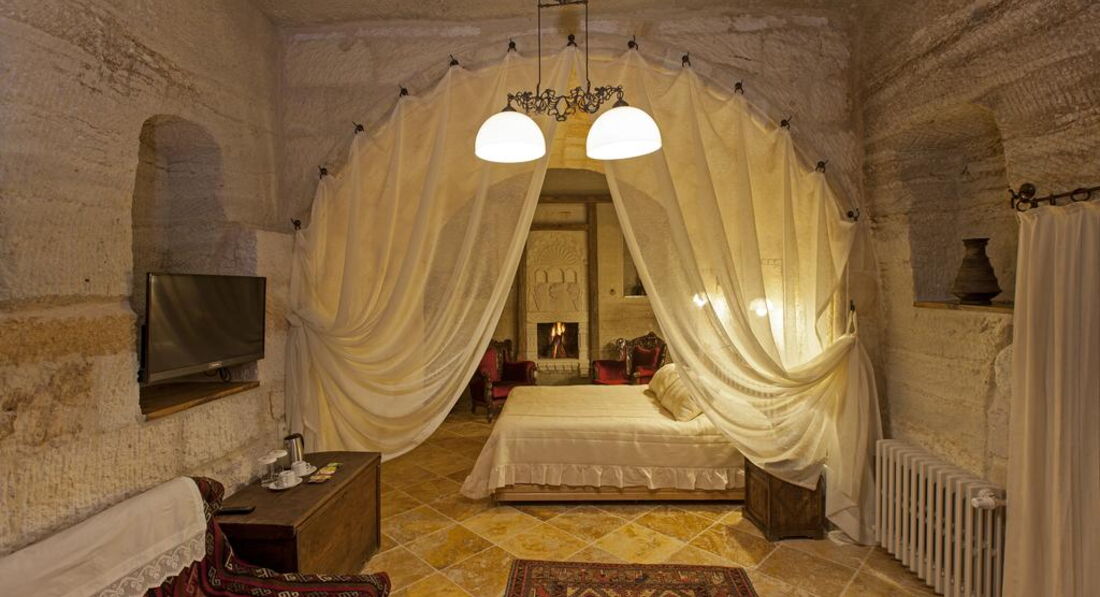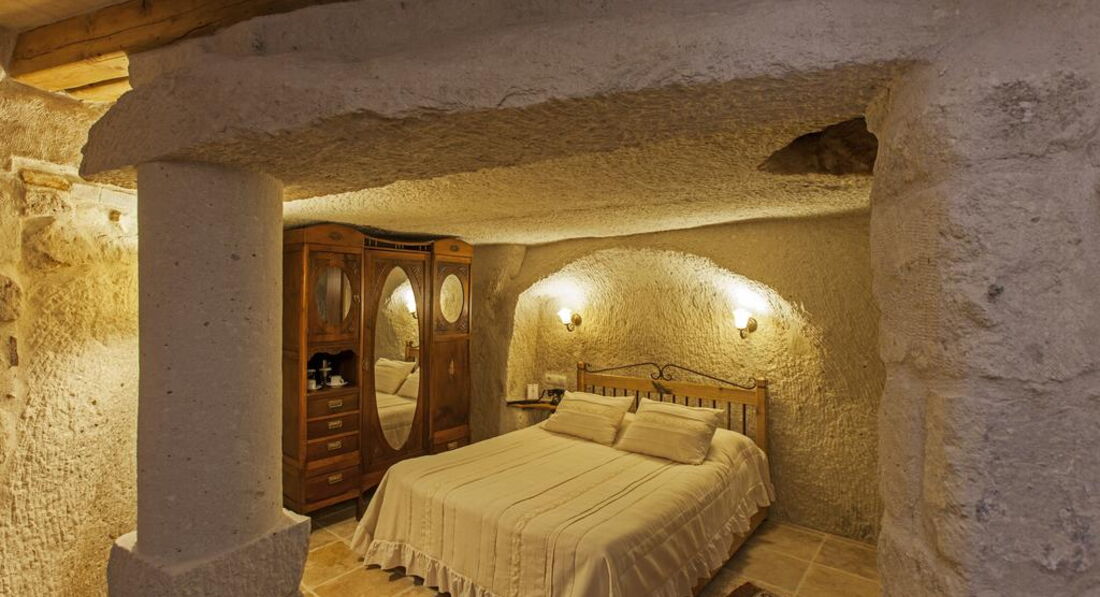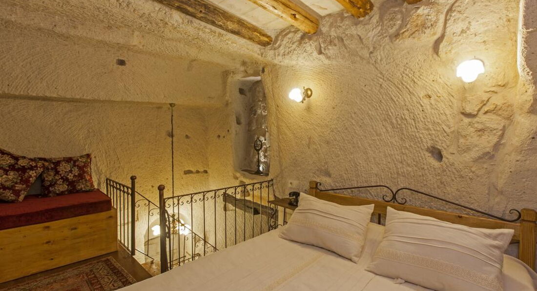 Цей готель у печері знаходиться в самому центрі Каппадокії і має терасу з прекрасним видом на навколишні села та долини. Архітектура модного готелю виконана у оттоманському стилі Горемі. Підійде до спокійного сімейного відпочинку.