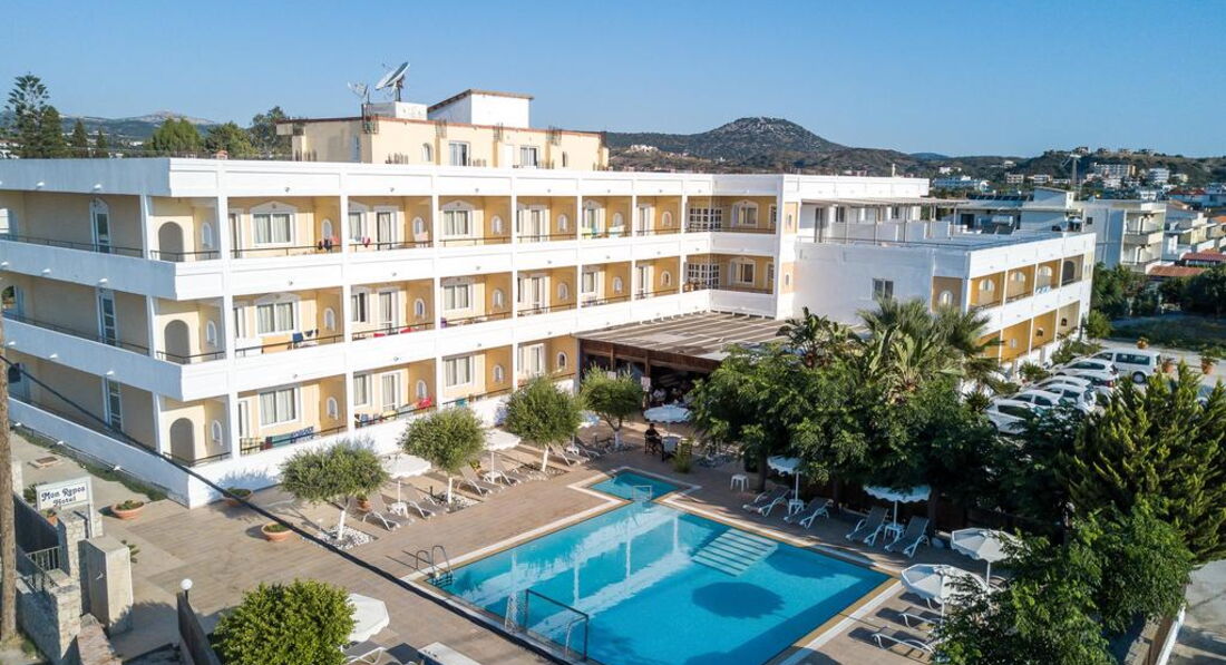 Готель Mon Repos розташований за 5 хвилин ходьби від пляжу Фаліракі. Збудований у 2004 році. Готель складається з одного триповерхового корпусу, обладнаного ліфтом. Готель Mon Repos є ідеальним місцем для знайомства з островом Родос. Площа території 3000 м².