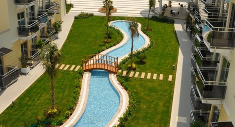 ТЕРРИТОРИЯ отеля не очень большая, но и не маленькая ( в Олюденизе много отелей с маленькой территорией). Украшена красивыми газонами, пальмами, цветами и декоративным бассейном, который, как речка вьется между корпусами, а в вечернее время очень красиво подсвечивается. Есть spa - центр (сауна и хамам, массаж), фитнесцентр. Есть хорошая детская площадка.