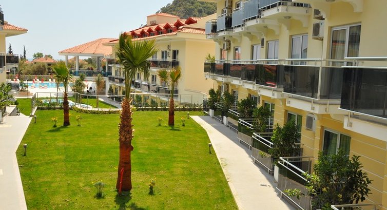 У отеля очень удачное расположение. Расстояние до пляжа 200 м, до остановки долмушей в Фетхие – 170 м., до Голубой лагуны (поста оплаты) – 350 м., центральная улица с ресторанчиками и барами в 250 метрах.