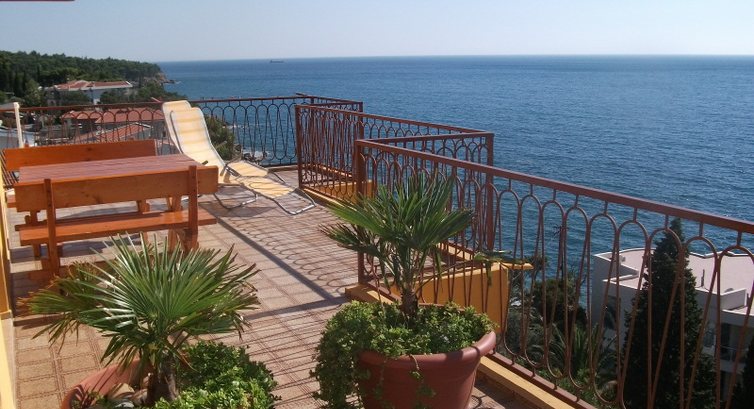 Аpartment 05: Площа номера (45 кв. м), перший поверх, тераса (18 кв. м) з видом на море