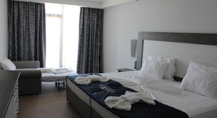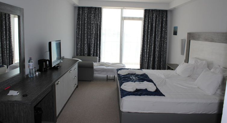 Отдыхали с семьей в июне 2016 года. Приехали в отель в 9 часов утра, на ресепшене сказали, что заселение с 14.00, добирались более 12 часов были сильно уставшими, отель пошел на встречу и уже в 11.00 заселили в номер, причем с видом на море. Номера чистые, мебель новая, сантехника исправная. Правда непонятно работал центральный кондиционер, создавалось впечатление, что его ночью после 23.00 отключали, т.е. он работал, но не охлаждал, а в 4-5 утра включали. Иногда ночью было жарковато. Море в 20 метрах от отеля, правда пляж практически отсутствует. Загорали на лежаках у бассейна, а в море ходили купаться. Вода в бассейнах сильно насыщена хлоркой (если воду будоражить сильно пениться). Анимация на момент приезда была никакая, днем была йога и вечеров ребята аниматоры устраивали танцевальное представление. В течении 10 дней число аниматоров увеличилось до 7-8 человек и анамация стала более ли менее, в общем в течении дня можно было себя чем то занять. Обещанные снеки в течении дня практически отсутствовали, после 14.00 выносили поднос с пиццей порезанной на крохотные кусочки и какие то печенюшки. Зато мороженое ешь в течении дня без ограничений. Питание в основном ресторане достаточно разнообразное, каждый день, на обед и ужин появлялось новое блюдо. Завтраки стандартные. Из фруктов были бананы, черешня, клубника, киви, нектарин, персики, арбузы, дыни, яблоки, груши. По пятницам выступал фольклорный болгарский ансамбль. По вечерам в баре играл на синтезаторе и пел песни дядечка пожилой. Создавал очень даже очень приятную атмосферу. Хороший гриль, он находился в баре на улице. Очень порадовал тур оператор Anex тур. У нас назад был рейс в 21.25, а потом его перенесли на 3 часа утра следующего дня, т.е. мы в отеле находились до 23.00, а выселение из номера должно быть в 12.00, отель по просьбе туроператора предоставил нам наш номер до 16.00, а потом переселили в более комфортабельный номер до приезда автобуса в аэропорт. В целом отдыхом в данном отеле остались очень довольны.