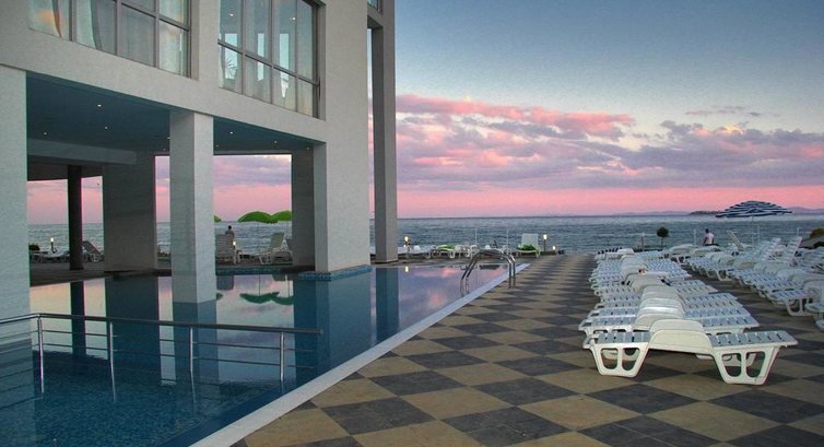 Отдыхали в этом отеле с 29 июля по 8 августа,в принципе плюсов больше,чем минусов,но все же они есть! Самый главный минус-нет поручня на спуске к морю(для пожилых людей и инвалидов очень неудобно). Никто не следит за тем,чтобы посторонние люди не купались в бассейнах отеля и не занимали лежаки на море!!! А то получается ,что денежки платите вы,а лежаками пользуются вообще посторонние люди,не проживающие в этом отеле.Возле бассейнов очень грязно,а уборка начинается когда уже все отдыхающие расположились для шезлонгах для отдыха(хотя уборкой это тоже не назовёшь ) Персонал доброжелательный,но немного ленивый.Еда вкусная,разнообразная,голодными точно не будете.Замесательное чистое море,песок.Номера шикарные с огромными кроватями. Все чисто ,номера убираются постоянно,полотенца и постель меняются регулярно.