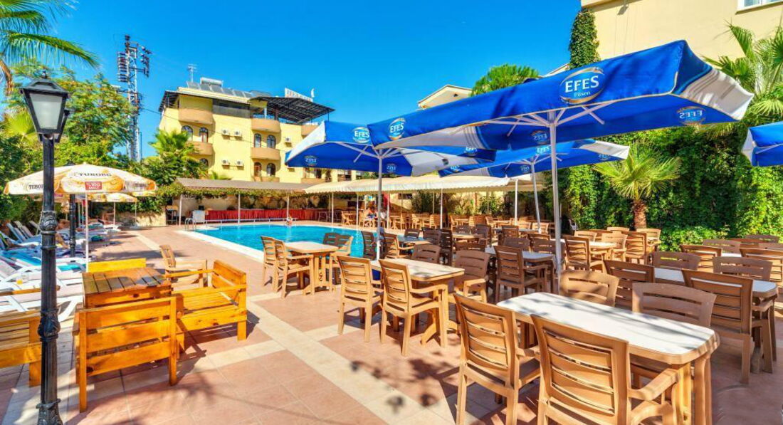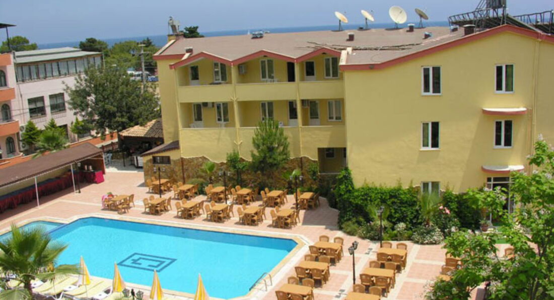 Отдыхали мы вдвоем: я и дочка 7лет. Приехали в отель в 15:40, заселили в номер сразу. Номер чистый, но все время пахло сыростью, т.к. сантехника поношенная, вентиляции в ванной никакой. Кондиционером мы не пользовались, мне казалось, что из него идет запах сырости и пыли. Нашли выход из ситуации - открывали балконную дверь, так и проветривали комнату днем и ночью. Номер убирали каждый день, постельное белье за 7 дней поменяли 2 раза (я считаю это плюсом), хотя в этом не было никакой необходимости. А полотенца не меняли ни разу. Персонал в отеле очень доброжелательный. Состоит в основном из сотрудников кому за 40. Но они изо всех сил стараются поддержать чистоту и порядок в отеле. Единственным молодым человеком был парень на ресепшене - Шехмуз. Очень приятный молодой человек, который всегда спешил на выручку и старался выполнить наши пожелания. Есть еще Мустафа. Он в этом отеле администратор. По началу был очень дружелюбным, но когда отказалась пойти пить с ним кофе вечерком, то от его доброжелательности и след простыл. Территория: есть 2 бассейна. Периодически обеззараживаются, чистятся. Дочка в них только и купалась. Анимации нет никакой. Чтобы хоть как то развлечься мы в один вечер попросили организовать дискотеку. Про еду: на завтрак все время одно и тоже - были яйца, свежие огурцы, свежие помидоры, оливки, свежая булка, брынза соленая, сухой завтрак с молоком, творог, маргарин в упаковке. Обед: помидоры в любом виде, даже суп из помидоров, на гарнир давали либо картофель фри, макароны, рис. Было очень много зелени, чему я была очень рада. Из мяса были соевые нагеттсы. Ужин: за 7 дней была один раз жаренная рыба, два раза тушеная курица, а все остальное время жаренная соя. Из десертов были какие то шарики политые сахарной водой и все. Из фруктов - арбуз. Из напитков - разбавленные водой соки, лимонады (из аппаратов), вино белое и красное из бутылок, но на вкус тоже разбавленные водой. Чай, кофе из аппаратов. Голодными не ходили, но есть изо дня в день одно и тоже стало напрягать. Хочу отметить экскурсии, которые мы приобрели в ROM TRAVEL. Там работают отличные ребята. Все хорошо говорят на русском. Все экскурсии идут со страховкой. А самое главное - их цены приятно удивляют, поскольку в 2раза ниже, чем у туроператоров!!! Я считаю, что нам ОЧЕНЬ ПОВЕЗЛО встретить ROM TRAVEL)). Отдельное спасибо Рамилю! Все было просто супер! За экскурсиями только к ним, не пожалеете! Про море и пляж: Море находится через дорогу, проходишь через зеленый парк и ты у моря. Море прекрасное, но вход с большими булыжниками. Мы нашли пару мест где были мелкие камешки, оттуда и входили в море. Лежаки и зонтики все бесплатно. Природа там конечно великолепная - теплое прозрачное море, возвышающиеся над поселком горы. Температура воздуха 30-33 град. Это супер. В целом наш отдых удался. Обрели новых знакомых, с которыми общаемся и по сей день. Наобщались с самими турками. Все они очень доброжелательные, но такие навязчивые... Место для отдыха шикарное, но сам отель я не рекомендую.