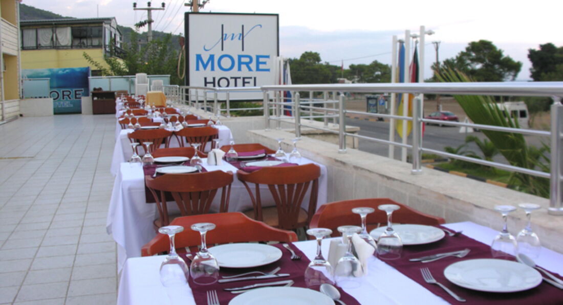 Выбор отеля базировался на очень большой экономии и срочности вылета на теплое море Турции. Мои критерии: Все включено, желательно первая линия, стандартные номера, свой пляж (где бесплатно зонтики, лежаки). Никогда не была в Кемере, но люблю горы, именно такой климат мне необходим. Я - женщина молодая, уставшая от забот, школьных проблем, ЕГЭ, решила просто побыть в красивом уголке природы (Турцию вообще очень люблю). Я всегда выбираю и бронирую отели сама. Конечно, читаю отзывы. Привлекла низкая цена, но когда увидела отзывы, там было много всяких приверед (теперь-то точно знаю)) Один парень написал - все им с женой понравилось за такие деньги (соотношение цена-качество - идеальное) - этот отзыв внушил доверие, плюс все нужные мне критерии. Но небольшой червячок сомнений разъедал, я его выбросила)) Еще, у кого интуиция сильная, советую смотреть фотографии места, бывает в голове прямо стукнет - хочу туда) Сердце не обманет! Рейс был ночной. Денег с собой крайне мало. Однако я знала. что заселение везде с 14.00, а приехала из аэропорта (кстати, недолго совсем) в 7.30 примерно. Еще народ на завтрак только просыпался. Конечно, сначала, немного испугалась, ну очень скромно выглядел фасад (остальной автобус от Пегаса даже как-то сочувственно ахнул) НО! ЭТО ВСЕ оказалось наоборот!!!! Утром вышел Мустафа - добрейший человек, сказала, очень хочу с видом на море. Он улыбнулся, сразу заселил в чудесный номер на 3 этаже с видом на море. В номере одна большая кровать и одна односпальная, балкон со столиком и стульями, тв, кондиционер, санузел - все меня устроило (отдыхала в разных странах и разных "звездочках". Уровень - приличный без преукрас. Кстати, за заселение утром предложила 10 баксов, отказался вежливо и ушел. Потом, оказалось, они всей семьей работали, или друзья, знакомые, чтобы как-то выжить. Но при этом туристы не страдают. Кормили вкусно и разнообразно, я не привереда, было все - и вкуснейшие супчики. и молоко, и хлопья, и все виды зелени и овощей в салатик, и картошка, и рис,и разные котлетки и курочка очень вкусная. Арбузы ежедневно завтрак и ужин - сладкие , как мед! В обед - дыня. Отличный бассейн, в жару там хорошо после обеда. В отеле много украинцев, есть белоруссы, россиян пока немного - все сдружились. образовалась большая компания - ну просто большая семья! Такая теплая атмосфера! Море - прямо перед отелем, через дорогу (движения там почти и нет) - идете через красивый сад, пляж песчано-галечный, конечно, мне, как не плавающей, нужны были спец-туфли-мыльницы))) Мне подарила улетавшая девочка, а так в соседних магазинчиках по 1-2 доллара) Вообще ездили в Анталию на базар, знакомая полотенца искала, а мне лампу хотелось и крем оливковый (всегда беру) - так вот - цены рядом с отелем в магазинах - намного ниже, народ душевный, все сувениры есть) Лучше не ездить))) Работникам сейчас нелегко, но они все делали, чтобы на отдыхе туристов это не отражалось. Рядом закрылись многие отели, может это временно, сказался кризис. А так, впечатления суперские, море, солнце, доброта, отдых, что надо!!! Кто хочет одиночества, получит его, кто хочет веселого общения, тоже не останется без него))) ВООБЩЕ ВАШ ОТДЫХ ЗАВИСИТ ОТ ВАШЕГО НАСТРОЕНИЯ И ОТНОШЕНИЯ К ЖИЗНИ И К ЛЮДЯМ! (никого не поучаю - личный опыт) Поеду ли еще туда - однозначно - да! Желаю любимому "MORE HOTEL" - процветания!!!! И да, порадовало отсутствие р