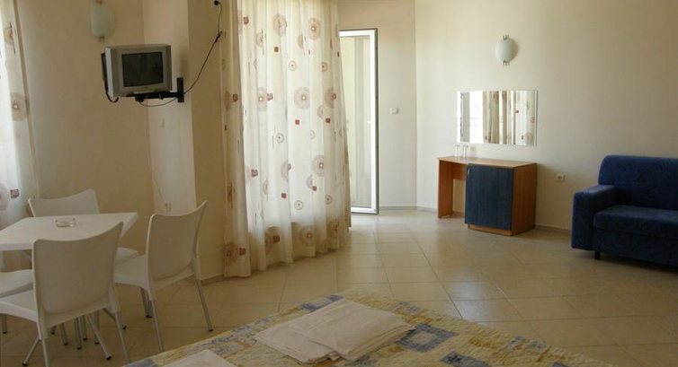 Приехали в данный отель в 9 утра, разместили сразу, номер чистый ремонта давно не было, двери старые при сквозняке колышутся и шумят, в ванне поддона нет под душ (мыться на полу), старые кровати , матрас пружины выпирают, есть маленький телевизор и холодильник и бесплатный сейф в номере. В отели как такого ресепшена нет, кругом родственники хозяев все столы заняты ими , хозяева заняты родственниками посиделки до 2 часов ночи, сами номера выходят либо на шумную дорогу или на шумный ресторан с видом на море( ресторан работает до 12), питание бутерброды не вкусный хлеб и колбаса, бара нет (точнее бармена) ,территорий фактически нет, есть маленький бассейн с лежаками. Данный отель не стоит тех денег которые за него просят, максимум это 2 звезды а не 3 как заявляют, от центра города он находится в минутах 20 быстрым шагом, пляж в 5 минутах от отеля, еще бы раз в этот отель я бы не поехал , есть гораздо лучше трешки чем этот.