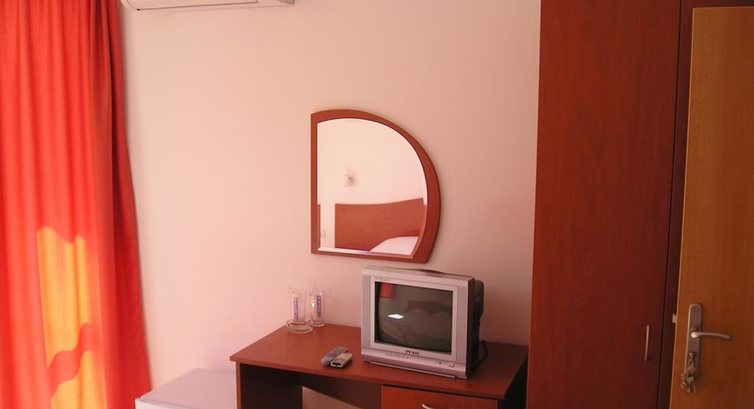 Отдыхаем с 22-го июля по 05 августа семьей из четырех человек с размещением в двух стандартных номерах. Тур от Biblio Globus без питания. Рейс N 8713 Вим-авиа перенесли на 5 часов, в связи с этим в отель прибыли к полудню. Встречает на ресепшен и решает все вопросы постояльцев администратор по имени Стоян. Безотказный, позитивный человек, свободно говорящий по-русски. Может помочь в любом вопросе, вплоть до подсказки, где приобретать качественный алкоголь. Заселили сразу. Располагается отель на центральной улице поселка, в эпицентре развлечений и состоит из двух четырехэтажных корпусов. В первом стандартные номера, во втором семейные. В основном здании, выходящем на улицу, первый этаж занят рестораном и ресепшен, номера начинаются со второго этажа. На втором этаже апартаменты владельца отеля Ивана и 3 номера. На третьем этаже техническое помещение и 5 номеров. На четвёртый не ходили. Лифта нет. Лестница для здоровых суставов. Это следует учитывать. Номера небольшие, общей площадью около 17 м. (комната 14-15 и душевая с туалетом 2). В номерах две односпальные кровати с общим изголовьем. По желанию можно сдвигать. Отдельно о матрасах. Из-за имеющихся проблем со спиной, первым делом принялась оценивать их на мягкость и упругость. Протестировала, показались жесткими, приуныла, как выяснилось позже, зря. После первой же ночи интрига (!), выражаясь языком Лобанова - как так-то? При изучении ярлыков и скорого гугла выяснилось, что матрасы ортопедические, беспружинные, итальянской фирмы Magniflex. Спасибо Ивану, что не стал экономить на столь важном вопросе, как сон постояльцев! Подушки, правда, "дохлые" 40×60, спасаюсь подкладыванием надувной дорожной. Во всех номерах имеется балкон, нешумная сплит-система, маленький холодильник с крохотным морозильным отделением (вмещает 0,2 ml. Мастики и одну мороженку), бесплатный сейф, 14-и дюймовый ламповый телевизор (с двумя российскими каналами - 1 Россия и RTVi с вещанием на Германию), телефон, уверенный Wi-Fi в номерах, пол кафельный. На ресепшен в свободном доступе утюг с гладильной доской, по запросу выдается фен, чайник. В нашем 201 номере в ванной комнате нет окна, но вентиляция легко устраняет влажность. В 103-ем имеется окно, принудительной вентиляции нет. Надо быть готовыми, что номера разные и могут сильно отличаться от отельерных фото. Нам попался "эталонный", с видом на улицу. У дочери номер без вида, зато прямо с балкона можно дотянуться до спелой алычи. При заселении на каждого отдыхающего выдается два полотенца, банное и для лица, два кусочка мыла, рулон туалетной бумаги. Бумага пополняется каждый (!) день, отказываться бесполезно, уже скопилось 5 рулонов :-) За 7 дней белье и полотенца меняли дважды. Белье белоснежное, с приятной отдушкой. Каждый день забирают мусор. На ресепшен четыре года живет любимчик детей кролик-альбинос Пухчо. Подобно котикам млеет от почесух за ушками. Хозяйка, младшая дочь Ивана, ревностно охраняет покой своего питомца, совсем мелким гладить не позволяет. А тем временем фотосессия Пухчо все откладывается из-за несвежих опилок. Вот такая она хозяйская любовь :-)