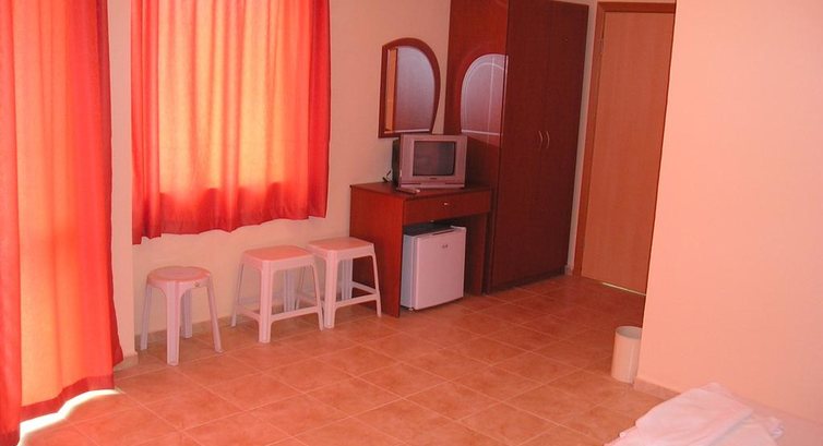 Расположен в центре Кранево,близко к автобусной остановке,но далековато до моря.Приветливый хозяин и обслуживающий персонал на ресепшене(Стоян и Калоян). Вечером довольно громко играет музыка в соседнем кафе,но в 23.00-23.30 наступает тишина. Комната меленькая, с балконом,кондиционером и сейфом.Постельное белье белоснежное, за 7 ночей менялось один раз. Теперь по поводу питания. Были оплачены завтраки,но завтраки довольно поздно - в 9 часов,да и после первого завтрака - 5 жареных булочек с малюсенькой чашечкой кофе,решили от завтраков отказаться и поменять на ужины с доплатой(ужин стоит 6 евро). Три раза из пяти на ужин давали на гарнир картошку фри,выбора нет,только то,что подают.Вокруг очень много кафешек,поэтому покушать есть где. В общем и целом отель для 2 звезд очень даже неплохой,особенно .если ехать семьей или с детьми