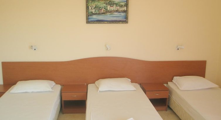 Отдыхали в отеле с мужем, годовалым сыном и мамой. Выбрали Болгарию из-за мягкого климата и быстрого перелета. Порадовало расстояние от аэропорта до отеля, ехали всего лишь полчаса. Хозяин отеля Иван встретил нас очень радушно, помог сам отнести сумку до ресепшена, сразу выполнил нашу просьбу по поводу детской кроватки и накормил вкусным ужином, хотя приехали мы в 23 часа вечера. В отеле чисто, очень удобные матрацы, много маленьких детей, отдыхают много местных, кормят очень хорошо, за наше недельное пребывание ни разу не повторился ужин. Единственное завтраки у них однообразные, постоянно гренки с джемом, с их любимым сыром и яйцом. Уборка в номере каждый день. Были с мужем во многих странах, в Болгарии в первый раз, настолько подкупило отношение персонала, выполняют каждую нашу просьбу, идут на контакт с маленьким ребенком, все игрались с моим сыном. Правда для нас, для молодежи, развлечений в кранево практически нет. Но целью отпуска было показать сыну море. Отель рекомендую, все очень понравилось. Спасибо Ивану, официантам за хороший отдых!