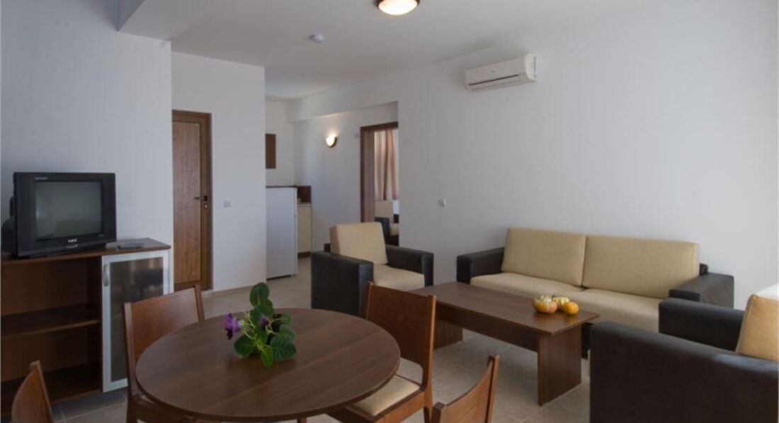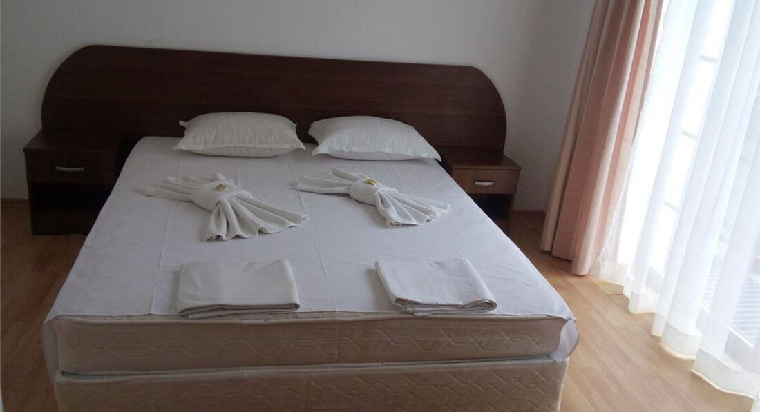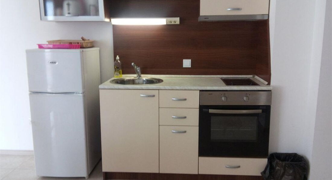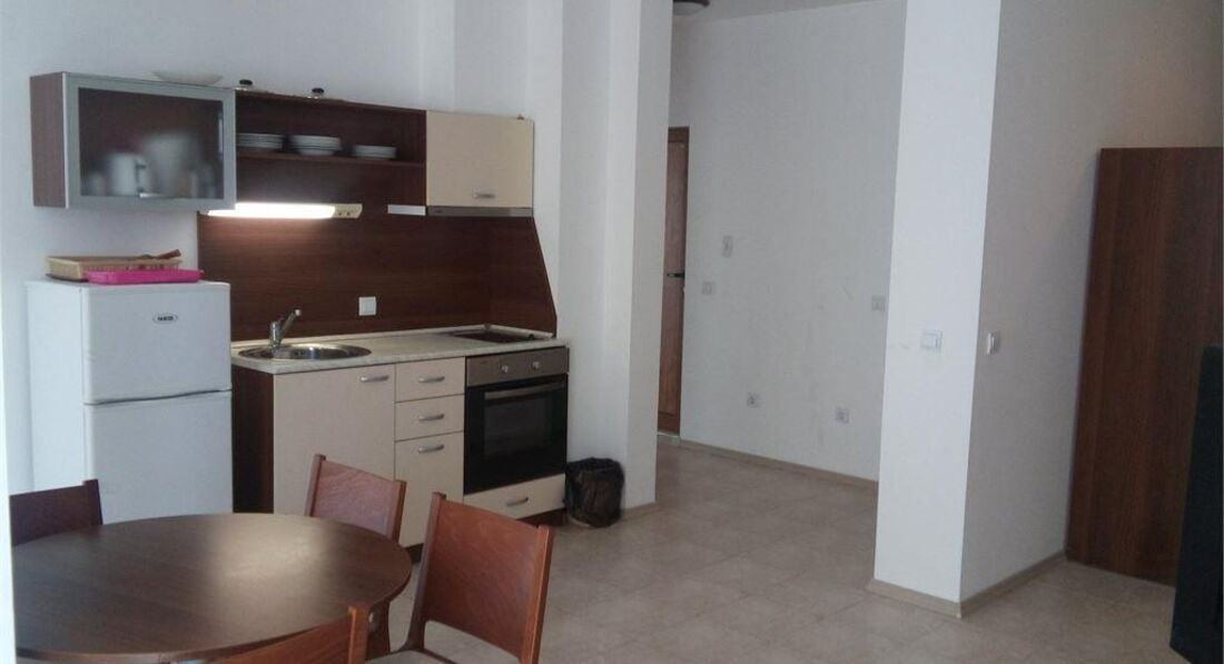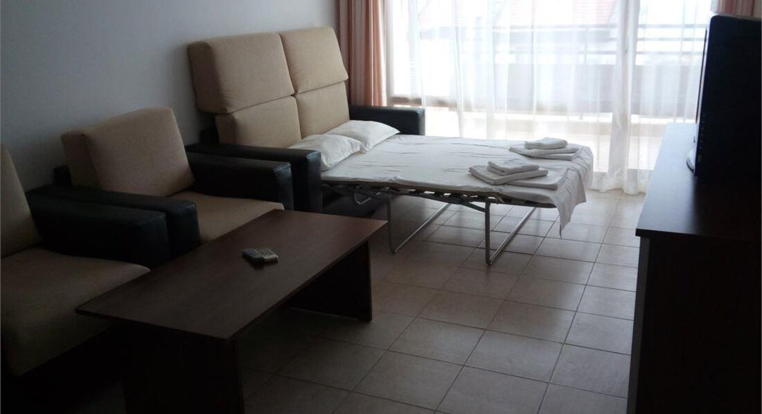 Номер №1: хороший, большой, прихожая-гостиная- кухня, раскладной диван, стол, стулья, вторая комната спальня, кровать, шкаф, окно во всю стену (не открывалось), балкон достаточно большой, вид на море, в общем, нам понравилось...Кинули вещи и пошли искать обменник и где покушать (кстати, не меняйте деньги в аэропорту, не выгодный курс, меняйте уже на месте, обменники на каждом шагу, на всем Святом Власе курс был 1,905 лев за евро)