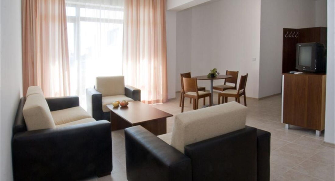 Были летом в отеле Морской маяк, что в Свети Влас,летели АзурАир-нормально, получили багаж,погрузились в автобус. В течение часа были доставлены в отель,гид нашел управляющую(Ренни,реагирует на каждую просьбу), нас проводили в номер. Отель как таковой отелем не является,это комплекс квартир,купленных разными людьми и сдающимися на время отсутствия хозяев.Номер уютный,просторная терраса, кондиционер хорошо регулировался, протекала душевая кабина в стыках со стеной( попросили швабру))),подтекал бойлер( вместе со шваброй было доставлено ведро,пригодилось), кухонный уголок,чайник,посуда, сковородка новая, холодильник чистый, бесплатный Wi-Fi(несколько роутеров по всему отелю,пароли у Ренни),все отлично! У комплекса приятная территория,небольшая, зеленая, достаточно большой бассейн,много лежаков,всегда хватало,т.к. народа было мало. Калитки с двух сторон,одна(главная) всегда закрыта,ходили через большой подземный паркинг, либо через противоположную калитку.Есть маленькая детская площадка,рядом с лягушатничком))) В период проживания был день рождения мужа, Ренни( после просьбы) достала гриль, почистила, вечером за баром мы готовили вкуснейшую рыбку,мясо,отмечали др. Бар работал пару-тройку раз: включалась музыка погромче,выставлялись различные напитки на полки,в холодильнике бара всегда есть пиво,сок и вода( за денежку,сравнимую с магазином)))