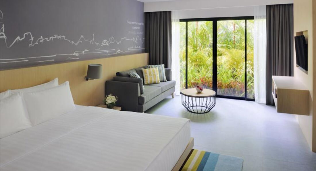 РАЗМЕЩЕНИЕ И НОМЕРА. При входе в отель ожидал приятный сюрприз - подарили браслетики из живых цветов. На ресепшене предложили холодные напитки и влажные полотенца. Оформили быстро, очень помог русско-говорящий сотрудник Андрей- все объяснил и проводил до номера. На ресепшене нам сказали, что у нас номер на первом этаже. И других номеров сегодня не будет. Мы сначала расстроились, а потом оказалось, что номер фактически находится примерно на уровне 4-го этажа с красивым видом на сад. В номере были две односпальные кровати, небольшой диванчик( вместо него по нашей просьбе принесли кровать для ребёнка), длинный стол на пол-стены, кресло, телевизор, встроенный шкаф-купе, бесплатный сейф, эл.чайник и пр. Все было рабочее. Номер понравился. В номере прекрасно работал wi-fi.