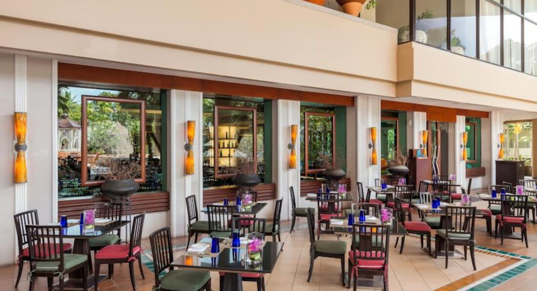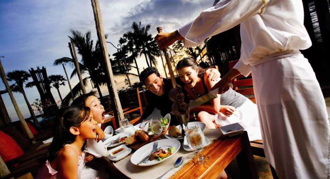 РЕСТОРАНЫ И ПИТАНИЕ. У нас был полный пансион (завтрак-обед-ужин, без напитков). Завтрак - "шведский стол", обед и ужин - по 3 блюда на человека по меню: один салат или закуска, одно основное блюдо, один десерт, напитки за отдельную плату. Завтраки проходили в ресторане "Pacifica". Кормили вкусно, разнообразно. Много фруктов - дыни, арбузы, папайя, драконы, бананы. Были панкейки со множеством соусов, больше всего понравился манговый соус. Вкусная выпечка. Были разные йогурты, рис, бекон и т.д. Обедали в этом же ресторане. Меню блюд на первый взгляд разнообразное, но к концу отдыха мы уже почти все попробовали и хотелось чего- нибудь новенького. Ужины проходят в нескольких ресторанах - в "Pacifica", "El Gaucho" и "OrientAsia". Последние два ресторана находятся около моря. В понедельник, среду, пятницу - ужин по системе "шведский стол". Много блюд, фруктов, десертов, морепродуктов. Очень вкусная пицца! Из напитков очень понравились манговый и арбузный фрэш, банановый шейк, алкоголь мы не пьём, поэтому по нему нечего подсказать не могу. Если возникали вопросы, мы всегда обращались к русской девушке Ирине - прекрасный, душевный человек, которая поможет в любой ситуации. Да и вообще, все официанты очень доброжелательные, внимательные, улыбчивые.