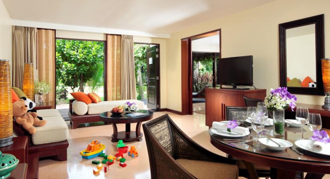 вчера вернулись из этого отеля. Отдыхали семьёй с маленькими детьми. Было забронировано 2 супериор. При заселении нам предложили за доплату в 4500 брат за сутки, поменять наши номера на резеденцию. Что мы и сделали. Чему были очень рады! Отель хороший. Завтраки стандартные, однообразные. Персонал в ресторане для вилл и резиденций мог быть бы и по приветливее, но да ладно. Так как у нас маленькие дети, наличие кухни в нашем номере нас очень спасало. Мы готовили детям привычную пищу. Ещё не далеко от отеля есть прекрасный ресторан "веранда" с Русской кухней. Где можно было кормить детей.