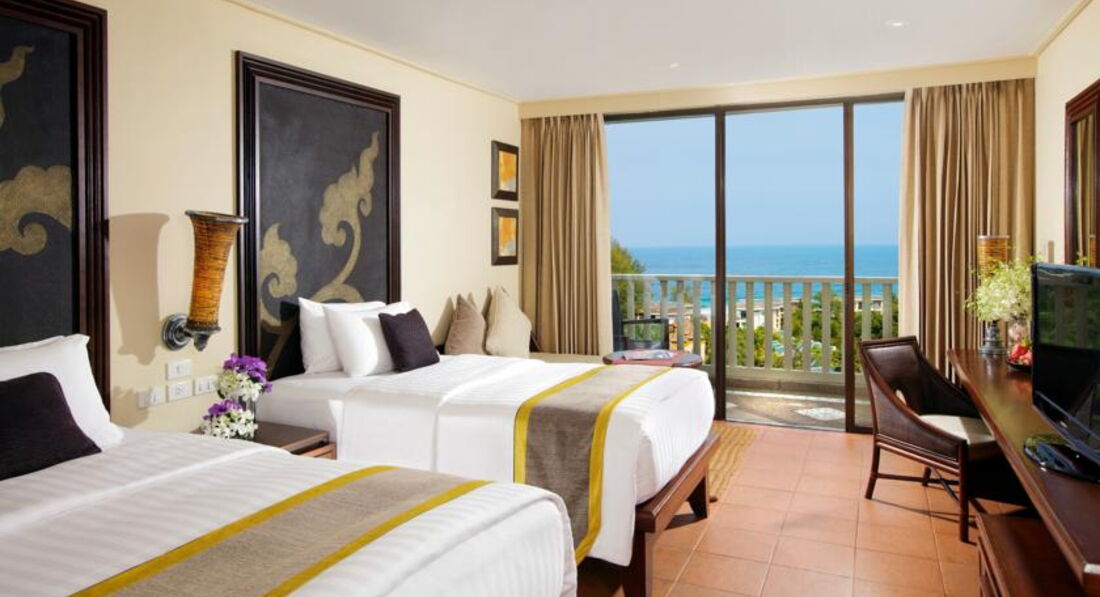 Отдыхал с женой и двумя детьми (3 и 6 лет) в отеле с 21.01.2016 по 01.02.2016.Все очень понравилось.Гости отеля ,примерно составляют( 25% русскоговорящие ,25% европейцы,50% азиаты)Территория отеля большая, все в зелени.Поселили нас в главном корпусе в номере 1104 , это на втором этаже. На ресепшене при встречи был русско говорящий парень Андрей, спасибо ему в дальнейшем очень помог, очень вежливый молодой человек.Номер просторный с балконом. Нам поставили дополнительную кровать, для второго ребёнка.Уборку номера нам делала девушка по имени Parn, она терпеливо дожидалась когда мы уйдём на пляж, а по приходу было все чисто, хотя мои детки наводили там беспорядок. Полотенца меняли два раза в день, белье по моему через день, вечером на подушки клали цветочки и открытки с пожеланием спокойной ночи. Утром на завтрак нам по просьбе ,для детей готовили овсяную кашку. ( это нам подсказала русско говорящая девушка Ирина, не знаю,кем она работает, но она присутствовала и помогала выбирать блюда в обед в ресторане около центрального бассейна, а вечером возле пляжа. Ей отдельное спасибо.Завтраки были обильные, но однообразные, все вкусно . Обедали мы обычно в том же ресторане , где и завтракали. Там есть меню на русском языке и давольно таки приличная еда(рекомендую местный суп на кокосовом молоке с креветками),да и для детей нам приготавливали комбинированные блюда, а вечером мы ходили в ресторан у моря при отеле, в нем бывало устраивали Шведский стол, что очень удобно. Ещё там готовят очень вкусную пиццу , где ты сам сможешь выбрать ингредиенты.Дети целый день купались в бассейне, катались с горки,все остались довольны отдыхом.На пляж рекомендую ходить до 11 часов и после 16, очень сильное солнце.Пляж чистый, вода прекрасная. При отели работает детская игровая комната, мои дети были там один раз, говорили, что весело, но в остальные дни предпочли бассейн.Лежаки мы свободно занимали перед завтраком в 9 утра.Кофе на завтрак не обязательно брать в "бочке", как пишут в других отзывов . Можно попросить официанта принести латте или капучино. Фрукты все свежие были и зрелые. Выпечки множество видов.Сыров было как минимум пять видов, кстати все пробывал лично.Омлеты , яичница так же были, не только вареные яйца ( опять , как в другом отзыве), во втором зале есть разные отварные блюда, типо запеканок, отварного картофеля , сосисек и т.п.Готовят блинчики, оладушки,печенье. Когда пишут, что отель виноват, как люди прилетели и их встретили тур.операторы , я их не понимаю .Мы прилетели Аэрофлотом, все чётко , сели на такси ( Тайота джип )стоит 1200 бат с аэрапорта и за 45 мин. доехали до отеля.По приезду, т.к мы приехали в 12 часов, нас попросили подождать часик , пока наш номер будет готов . Мы спустились к бассейну, с женой присели в ресторане, а дети побежали купаться. Я даже не заметил, как время пролетело. Главное , нужно вовремя переодеться в самолёте в летнию одежду, чтоб было канфортно.При заселении берут 4000 бат , но этого не хватает, мы ещё пополняли пару раз депозит. Все платные услуги, обеды, коктейли записывают на номер.На сколько моя жена бывает привередливой ко всему, на этот раз она осталась довольна отелем.Главное, заехать на позитиве, тогда и отдых будет хороший!!!