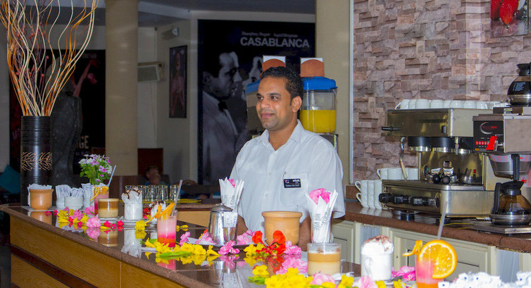 Відпочивали з дітьми в цьому готелі на початку березня! Дуже привітний персонал, не дають скучати, але й не надоїдають! Все в міру. Приїхали в вечір заселили швидко! Дуже багато німців але й російську мову знають. В номерах ремонт трохи старий, але ми на то не акцентували уваги, ми ж приїхали на море! (Але з іншої сторони в номерах ремонт йде повним ходом).прибирали кожен день, воду в бутилках кожен день лишали, то її було достатньо. Харчування різноманітне, голодним ніхто не буде, дуже класні десерти, випічка. Їжі достатньо, м`ясо на грилі, овочі, риба... на пляжі є ресторан, щоб в обід не йти в головний можна поїсти там. Випивка тоже всюда є, соки(розбавленні) газовані напої, пиво, вина, чай, кава, гарячий шоколад! Фруктів різноманітність бажала б кращого, але й того достатньо банани, апельсини, мандарини, фініки деколи яблука, гуава, полуниця.