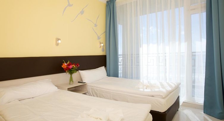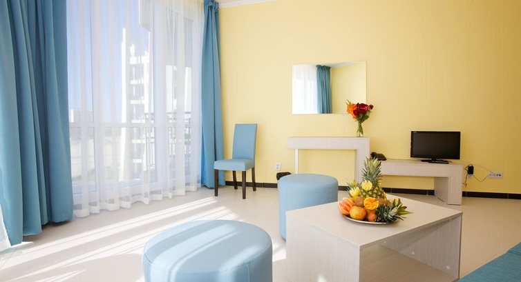 Решив поехать в Болгарию выбирала отель по рейтингу и отзывам и не прогадала. Отель понравился, номер у нас был 2-х комнатный с двумя туалетами, большими окнами в пол, с балкона было видно море и променад курорта.
