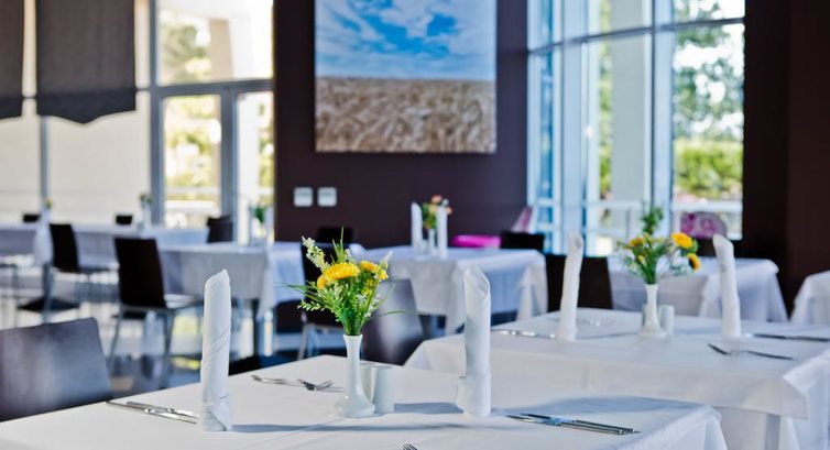 Ресторан не большой, покушать можно прилично, без особых изысканностей, но прилично, выбор тоже менялся, в течении 10 дней все таки что то новое появлялось каждый день. О деталях, я не понимаю, как можно в расцвете лета на столиках ставить пластиковые цветы, такого ни где не видела. Торты очень однообразные, то и ничего, и так в весе принялись :) , из фруктов были арбузы, дыни, яблоки, киви и апельсины. Один раз за 10 дней была черешня. Зато каждое утро свежевыжатый апельсиновый сок без платно. Вообшем в целом питание очень даже ок. Фрукты можно докупить на променаде, если хотите, в любом случае за такие деньги в отеле все очень прилично. Езжайте смело, если сам курорт Солнечный берег вас устраивает, то отель Вам очень понравится, так как он действительно в своей категории хороший!