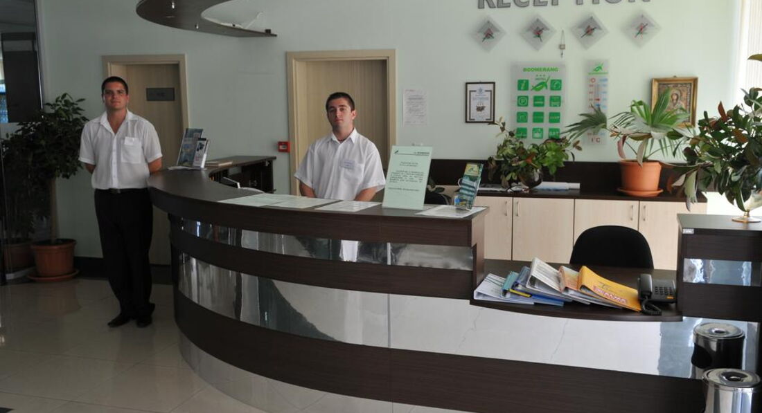 Первым приятным впечатлением было то, как меня встретили. Дело в том, что из-за форума, проводимого нашим премьер-министром аэропорт Пулково несколько дней работал в ненормальном режиме, все самолеты вылетали с задержкой в 4-5 часов, так что вместо 11 вечера в Болгарию я прилетела в 4 утра..Встречающая сторона - Турал, таких "поздних" туристов нас было человек 7. На микроавтобусе нас стали развозить по отелям, мой оказался последним. По дороге у нескольких туристов возникли сложности, так как хозяева отелей, в которые их должны были заселить - спали!! И гид с туристами стоял перед закрытой темной дверью и названивал, названивал, но никто его не слышал )) Та ситуация все-таки разрешилась благополучно - хозяин проснулся и вышел открыть дверь, но я, помятуя отзывы, прочитанные о Бумеранге, уже опасалась, что ужасный и деспотичный хозяин моего отеля точно уже давно видит десятый сон, не услышит, как я приеду, а если и услышит, то не пустит за порог - потому что ратует за тишину и покой в ночные часы :))) И после таких вот мрачных настроений я была ооочень удивлена, когда за стойкой ресепшена меня встретил стоящий по струнке портье и рядом с ним - хозяин. Дело было в пять утра! С улыбкой и пояснительными комментариями они отдали мне ключик, пульты от кондиционера и телевизора.