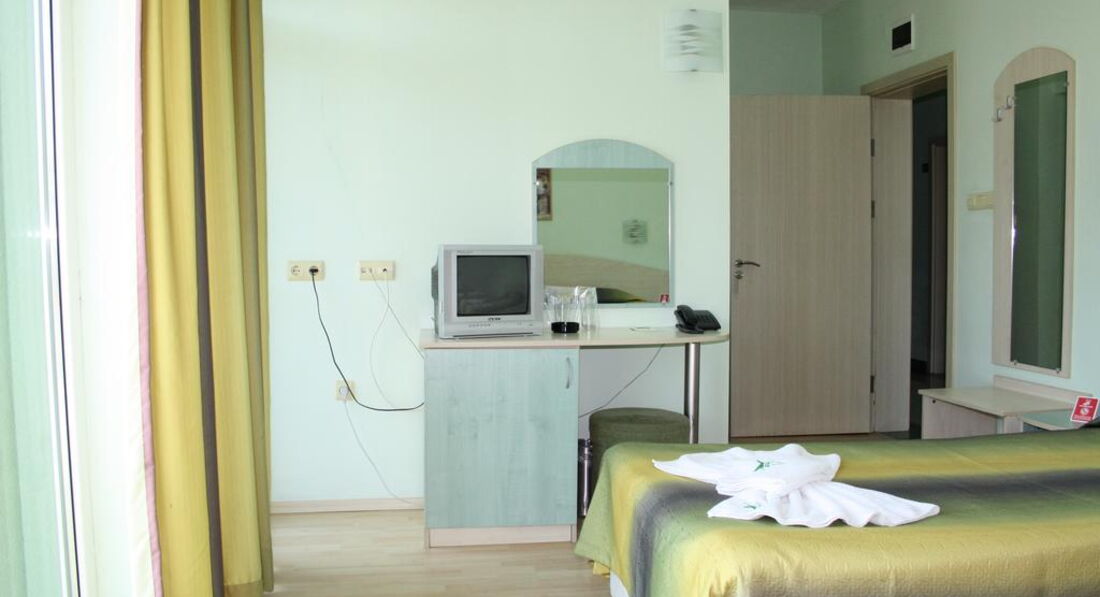Всем привет! Отдыхали в этом отеле во второй половине августа с подругой. Отель произвел очень хорошее впечатление,все новое,после ремонта,номера средних размеров,все есть,все работает,несколько русских каналов. Сейф платный на ресепшене,никаких вопросов не было,все ок. Мы брали только завтраки,для Болгарии других вариантов и не нужно. Завтраки были нормальные,еды много,правда, довольно однообразные. А обедали и ужинали в разных кафе на пляже и в городе. Огромные порции всего,салатов,супов,это отличительная особенность Болгарии. Цены очень доступные на все. Потом уже на двоих брали один салат,так как стандартный салат 350-400 грамм,такое же и горячее))