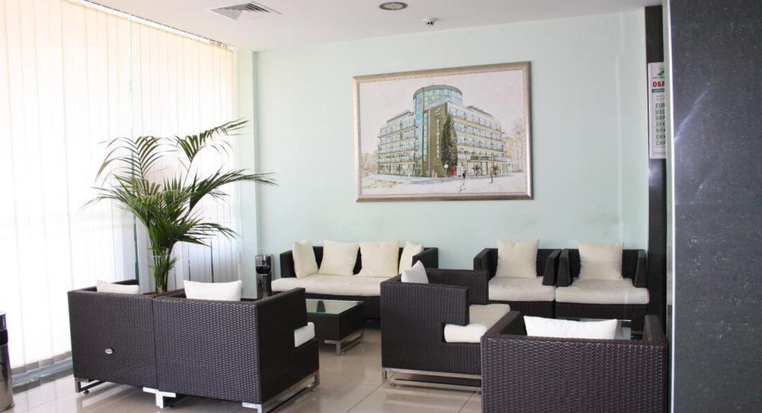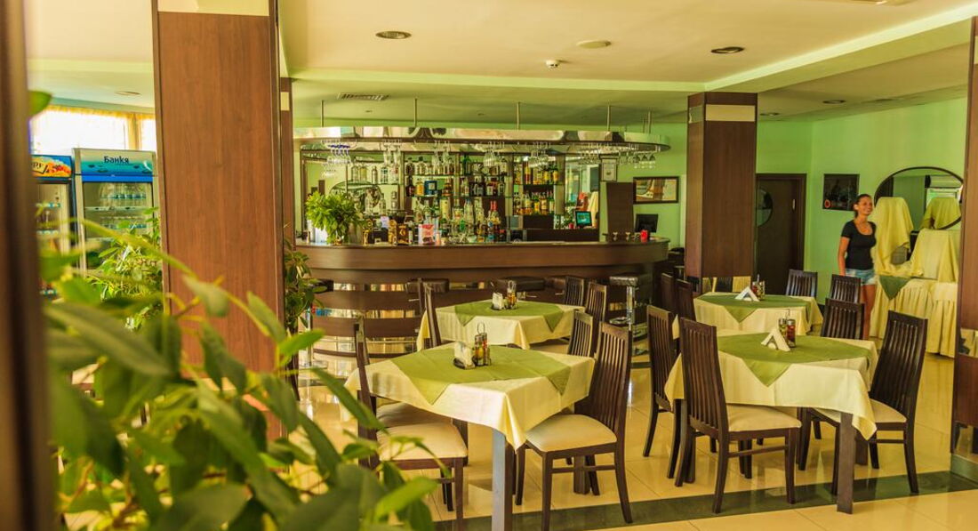 расположение: отель находится минутах в 15 ходьбы от пляжа. прямо под окном находится главный автовокзал, с него можно уехать в Софию, Бургас, Варну и т.п. недалеко, если идти в глубь курорта, есть отличный супермаркет Младость, там можно купить и продукты, и алкоголь, и сувениры (на 2 этаже).