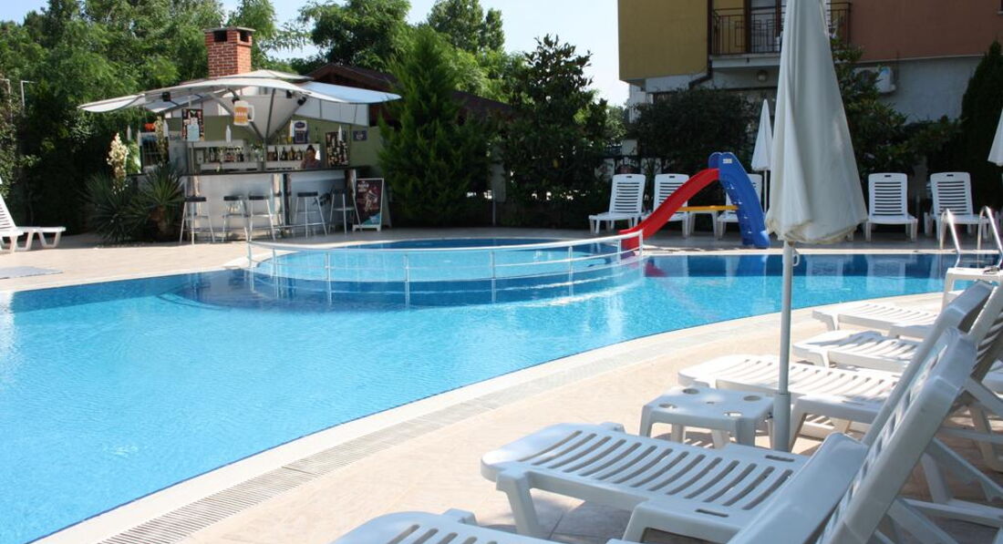 Отель – очень уютный и хороший, везде чисто, в номере убирали хорошо, аккуратный бассейн, до моря 10 минут пешком ( что очень полезно, так как Болгарская еда вся безумно вкусная), а так же огромный плюс, что вокруг отеля тишина и можно выспаться. Рядом с отелем есть дешевый супермаркет «Младость» частенько туда ходили за вином ( безумно вкусным вином) и сыром ( сыры у них очень вкусные, мне кажется во Франции сыр «БРИ» не такой прекрасный).